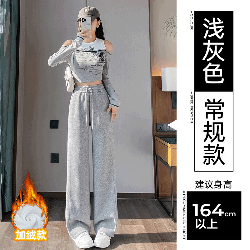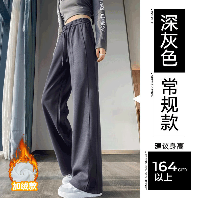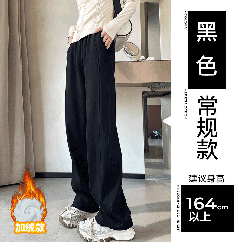 가을과 겨울 기모 바지 작은 스트레이트 바나나 바지의 좁은 버전 여성 폭발 2024 넓은 다리 바지의 새로운 좁은 버전스토어 가기