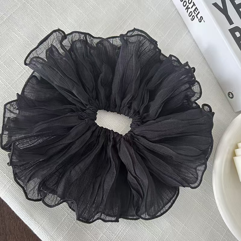 한국 주름 메쉬 대형 내장 헤어 링 고급 흑백 헤드 로프 헤드 플라워 올 매치 헤어 액세서리 간단한 돼지 대형 내장 헤드 로프