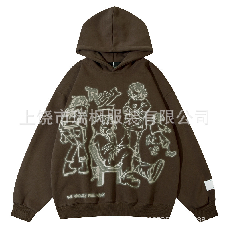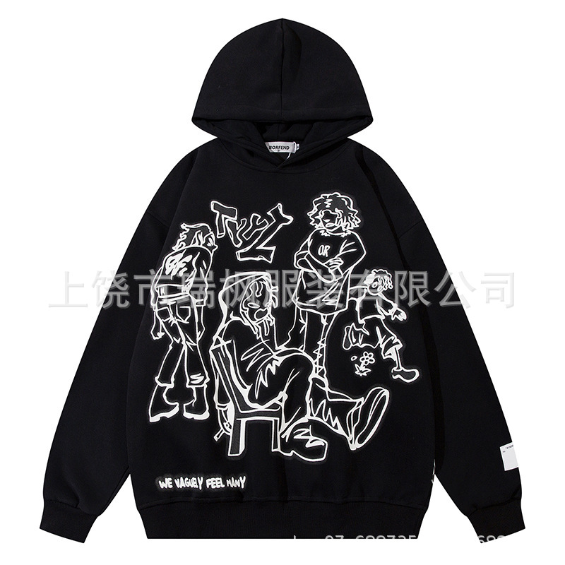 라인 피규어는 소년 하이 스트리트 트렌디 브랜드 디자인 센스 틈새 느슨한 가을과 겨울 풀오버 후드를위한 후드 스웨터를 인쇄했습니다.스토어 가기