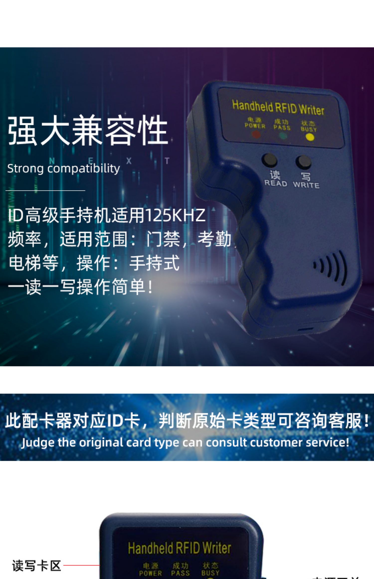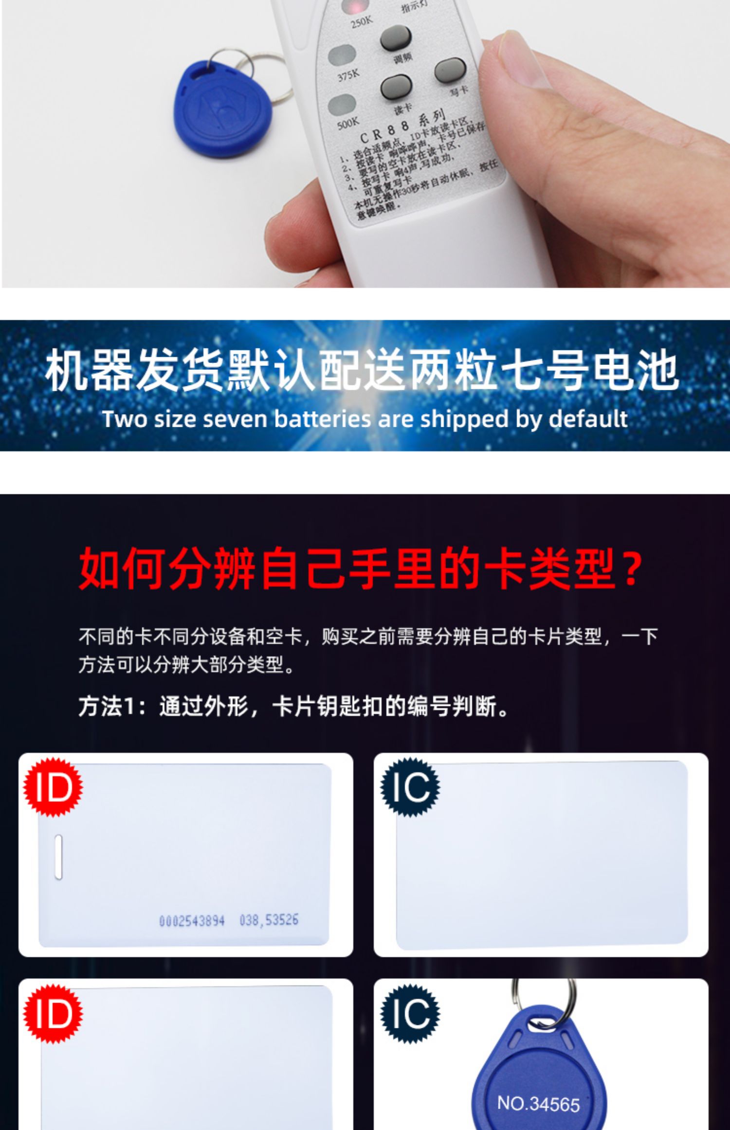 • ID 고급 단일 주파수 기계 패키지(버튼 흰색 카드 + 카드 배터리)