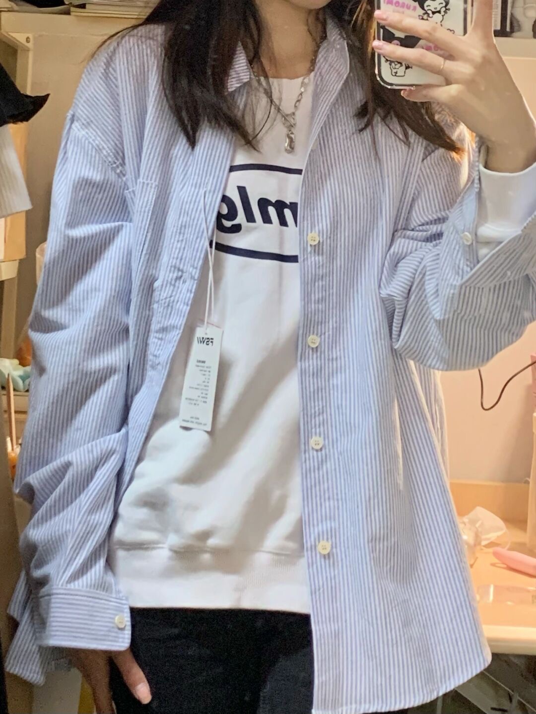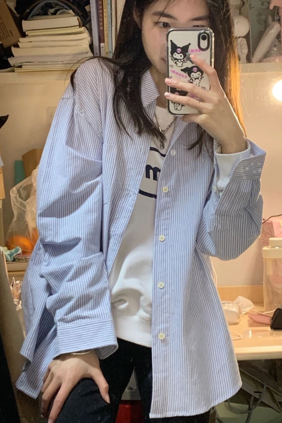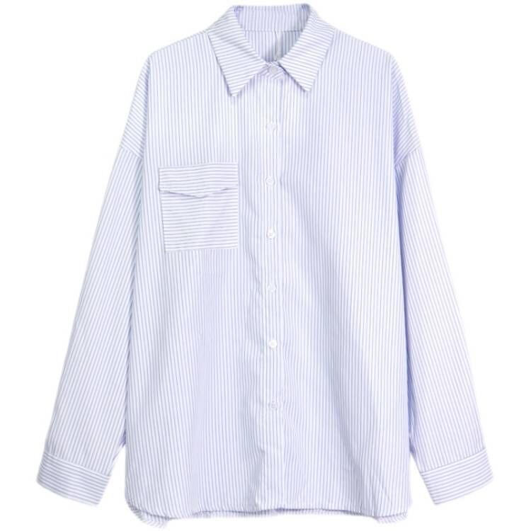 새로운 줄무늬 셔츠 탑 여성의 봄과 가을 한국 느슨한 디자인 센스 틈새 이른 가을 긴 소매 셔츠 캐주얼 자켓스토어 가기