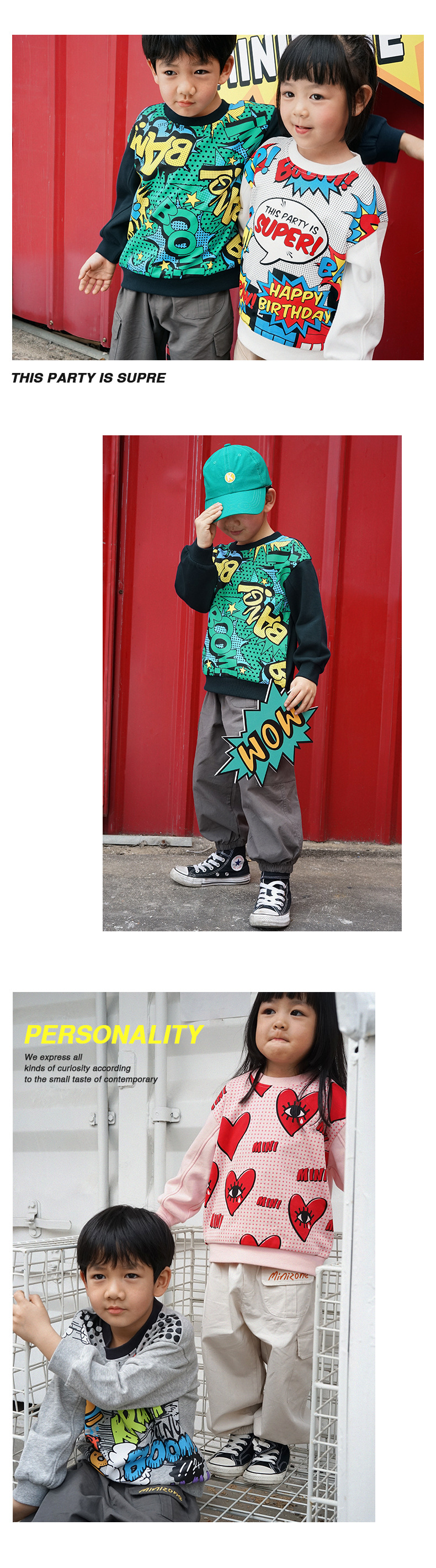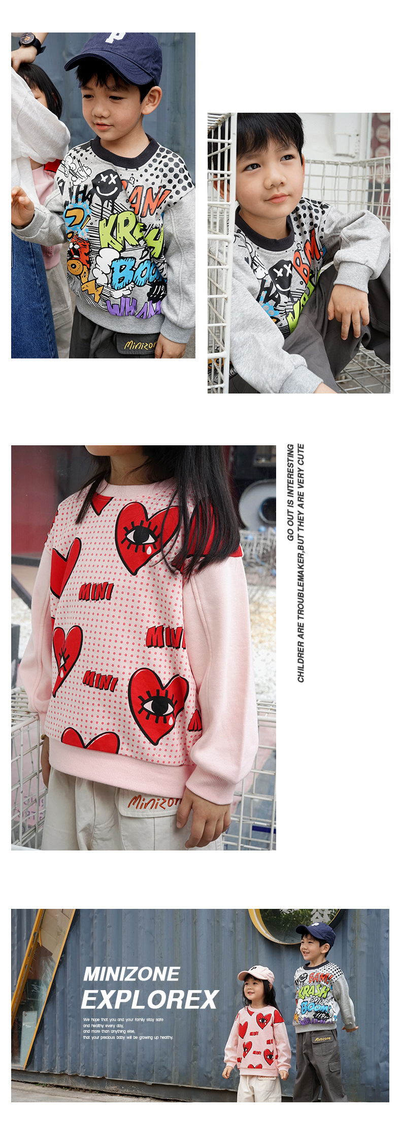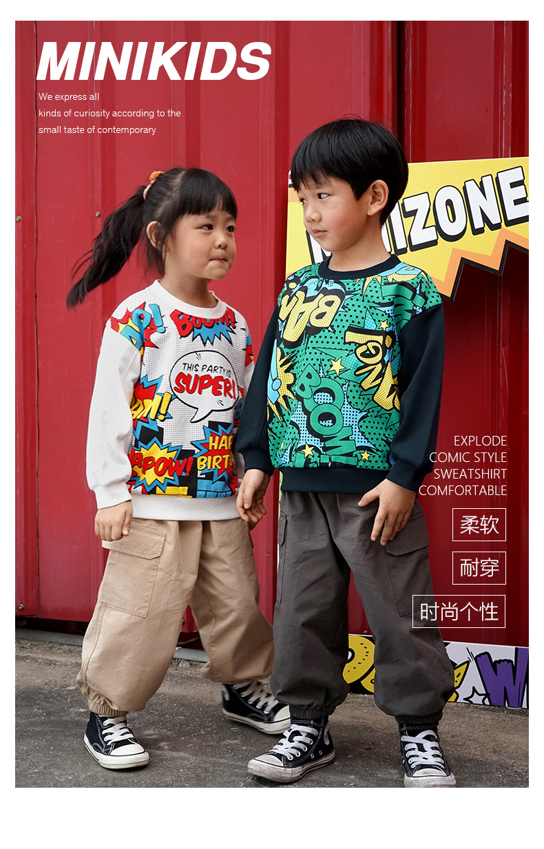 Minizone 어린이 스웨덴 봄과 가을 새 소년의 긴 소매 탑 따뜻한 여아 스웨트 외부 착용 아동복스토어 가기