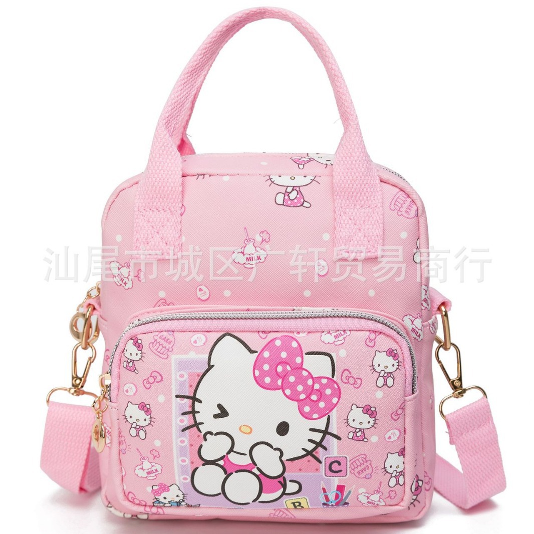 日系卡通儿童斜挎包KT猫美乐蒂库洛米玉桂狗皮革大容量收纳手提包包