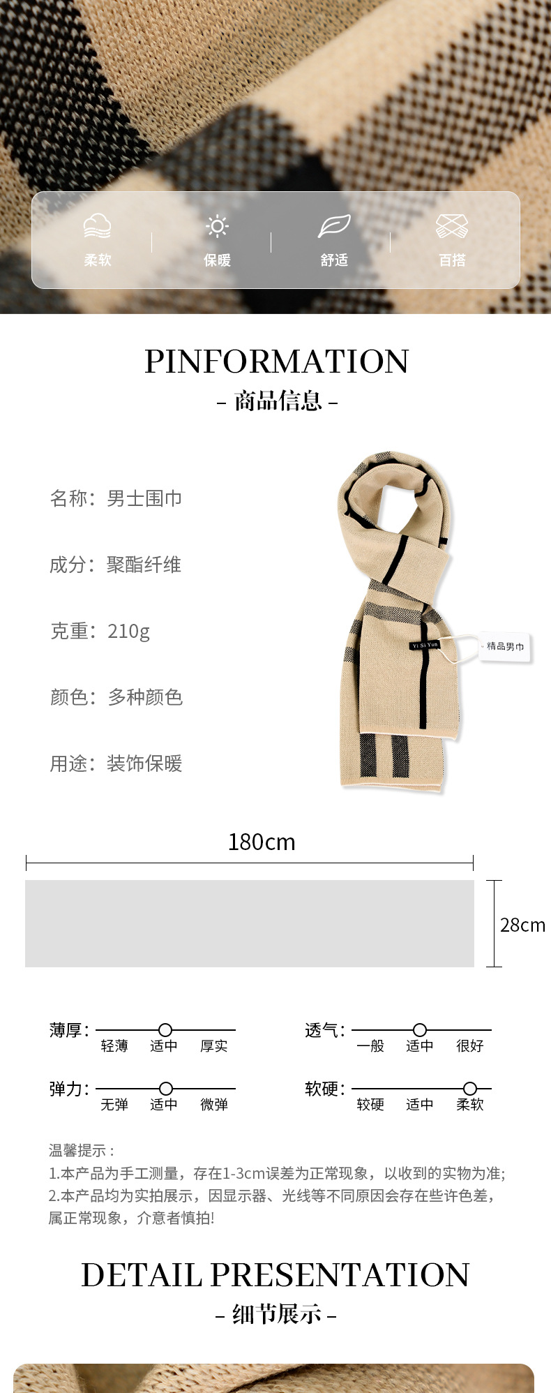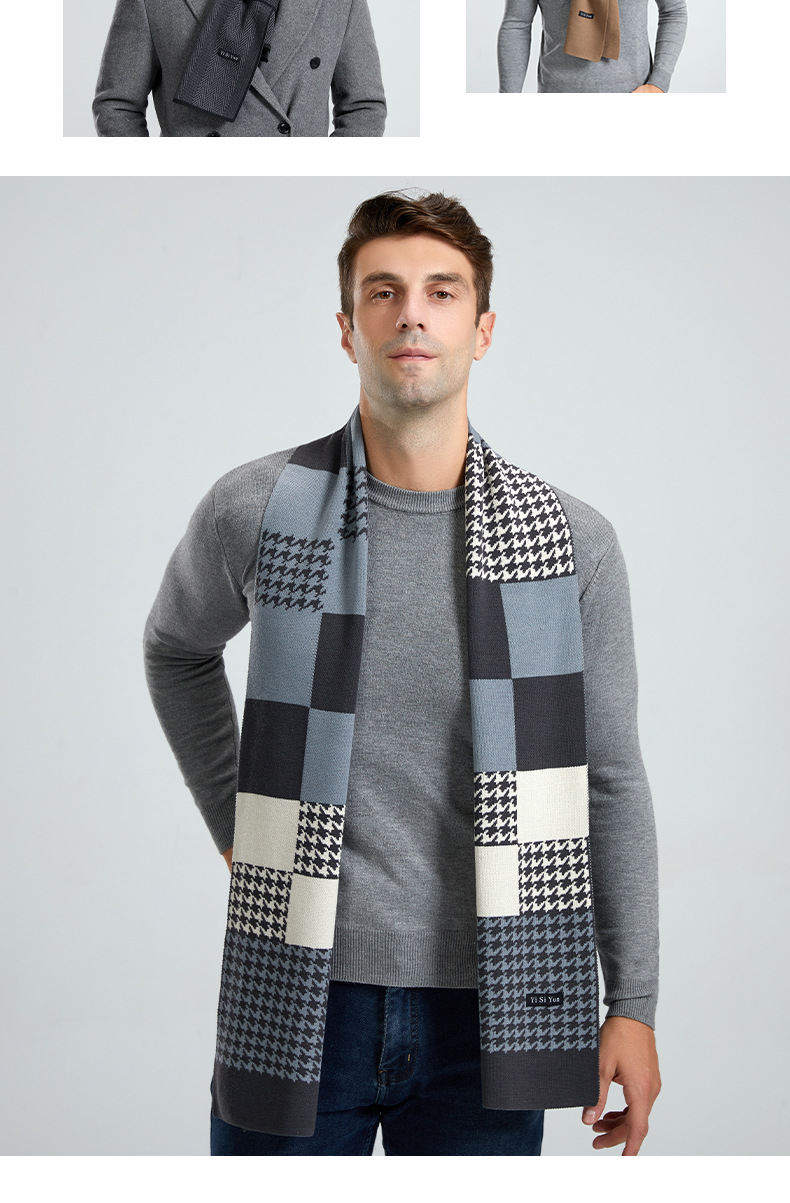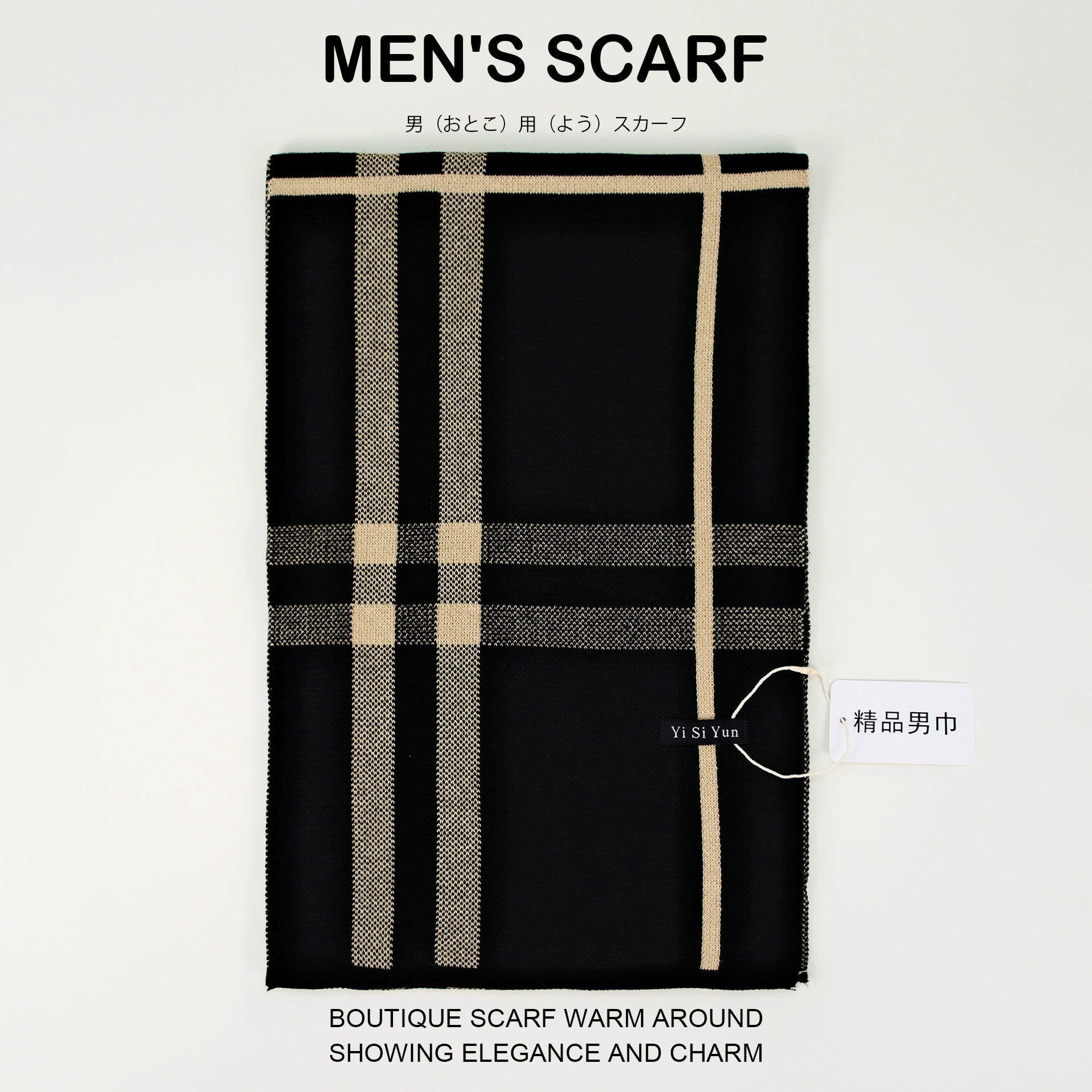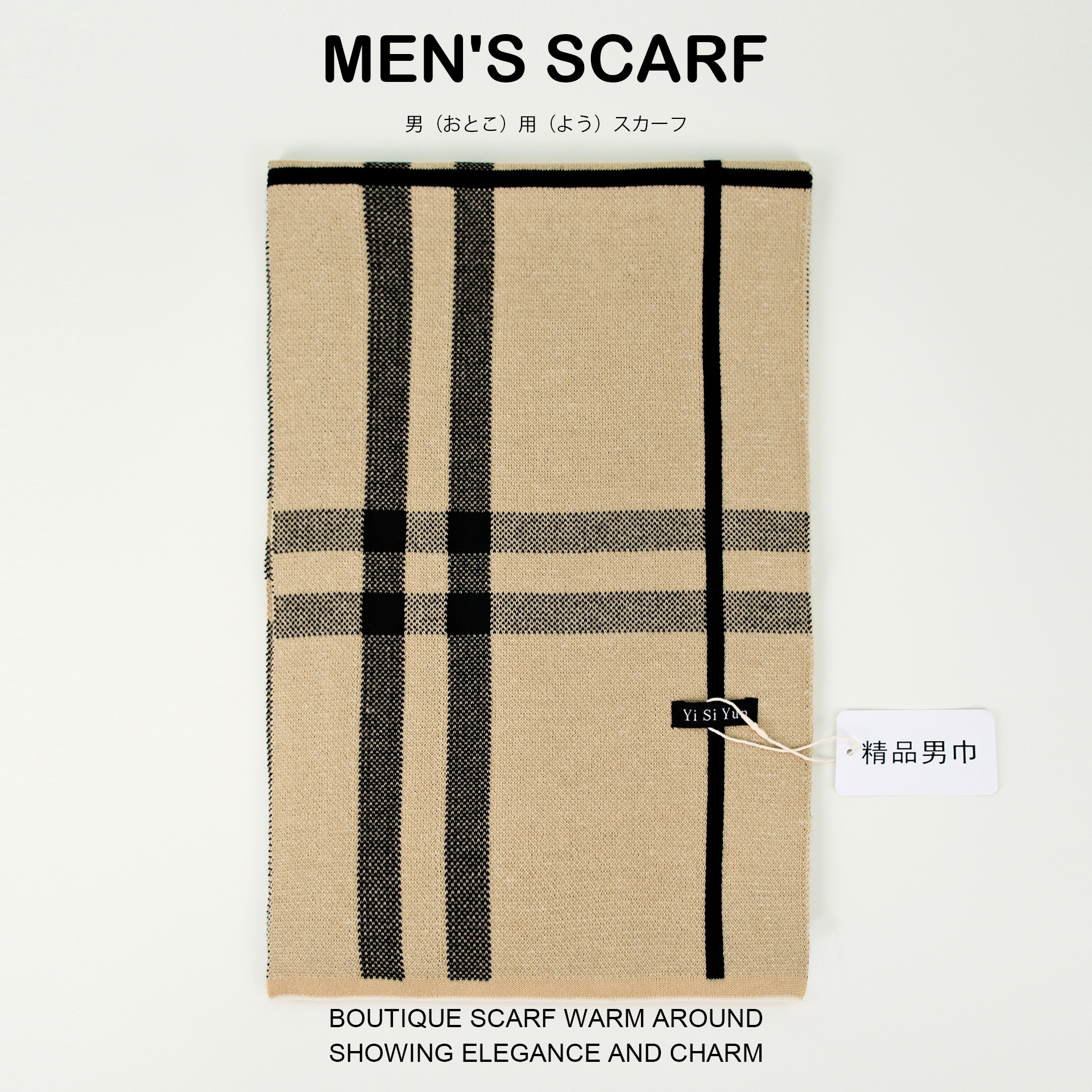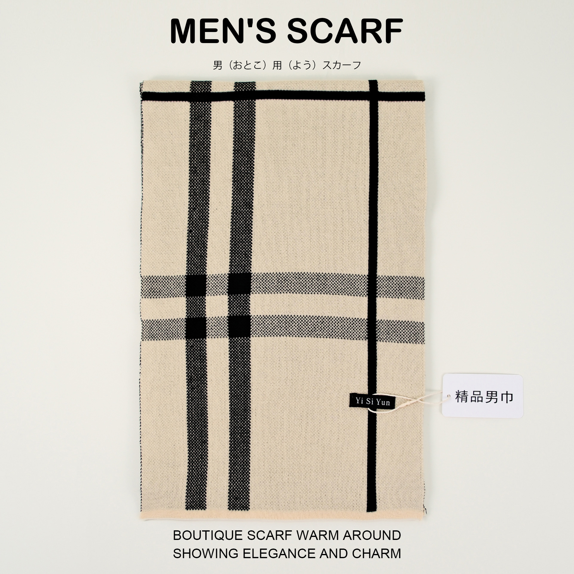 가을과 겨울 새로운 니트 남성 캐시미어 스카프 모든 경기 패션 격자 무늬 스트라이프 따뜻한 남성 캐주얼 스카프