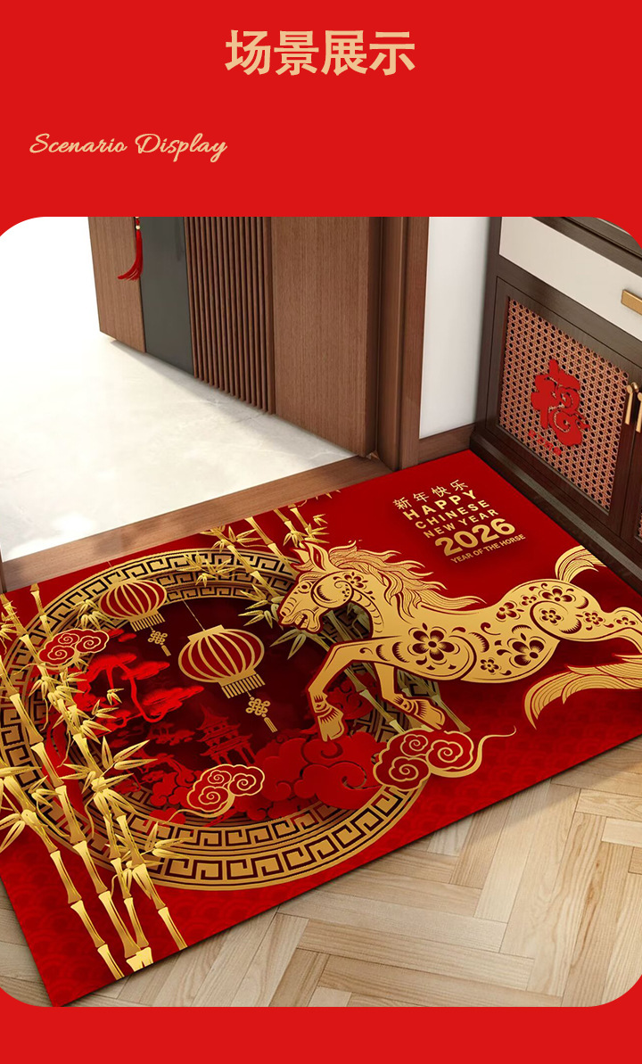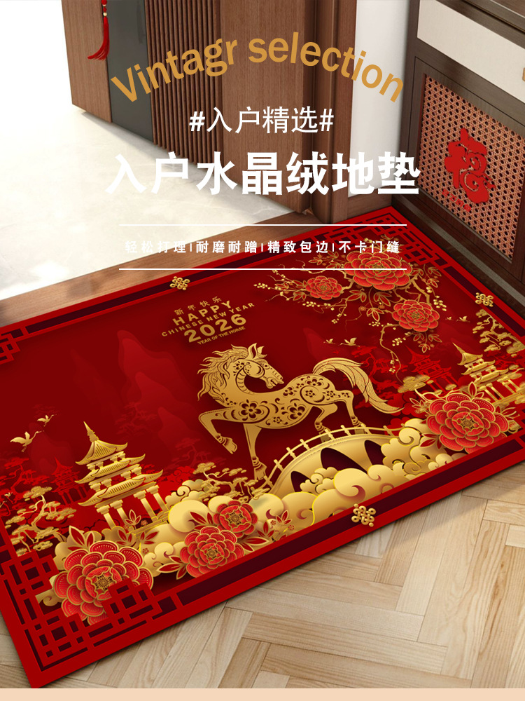 2026년 말년 새해 만화풍 축제 매트 현관 입구 욕실 크리스탈 벨벳 가정용 카펫 도어매트스토어 가기