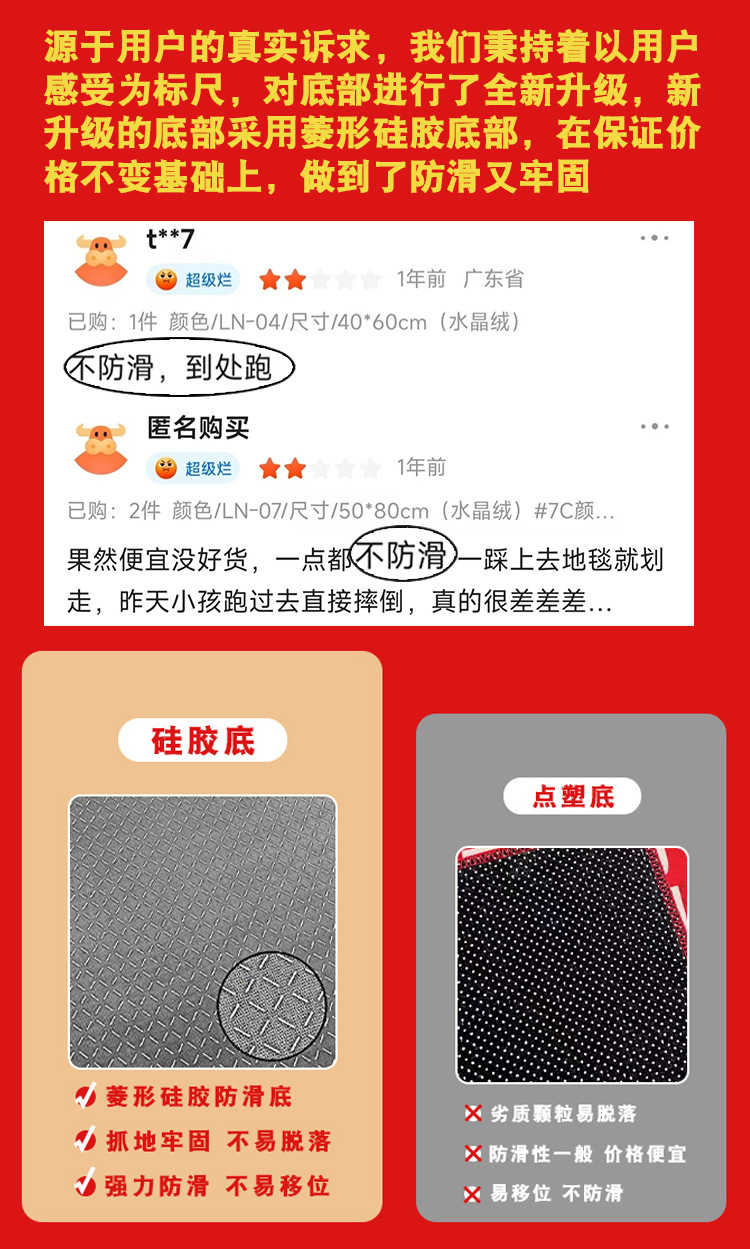 • 50*80cm(크리스탈 벨벳 실리콘 바닥)