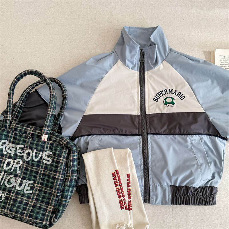 어린이 코트 2025 봄 한국 스타일 새로운 소년과 소녀 서양식 자수 콘트라스트 재킷 아기 캐주얼 지퍼 셔츠