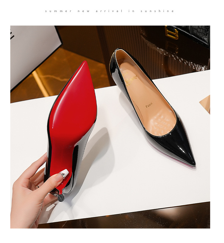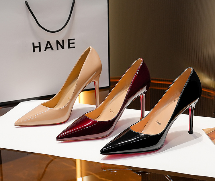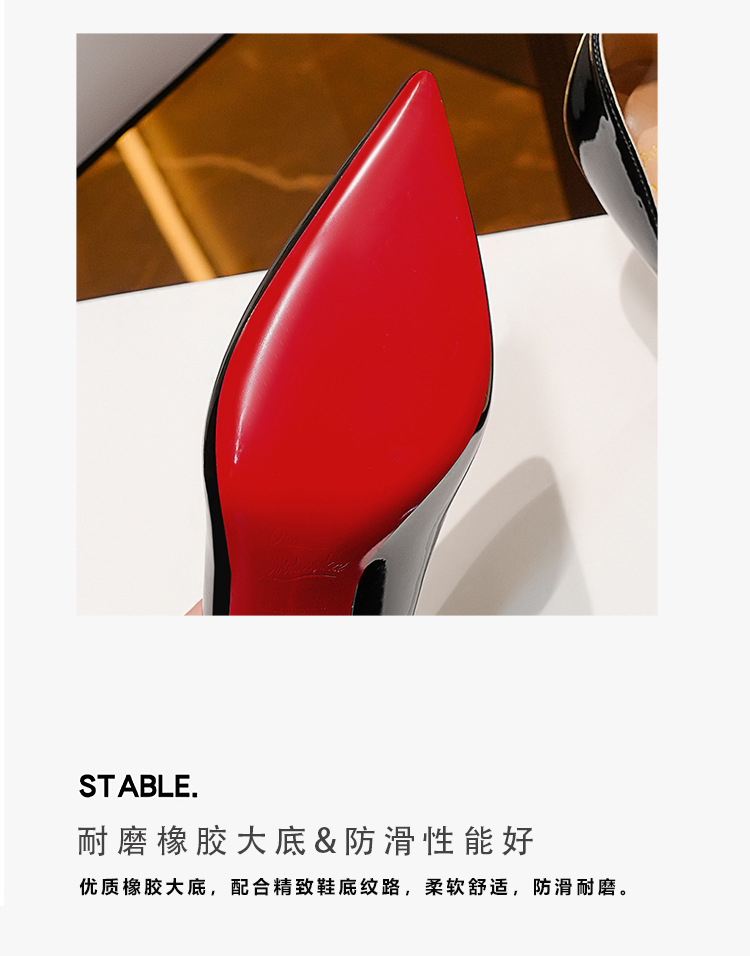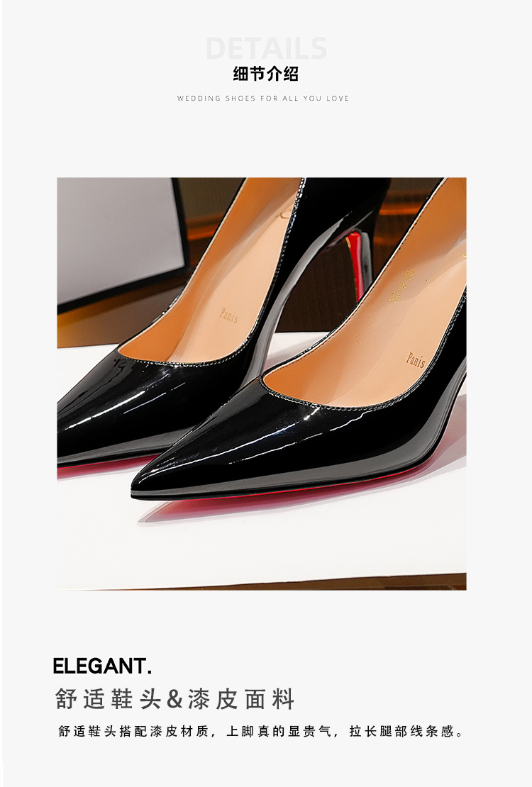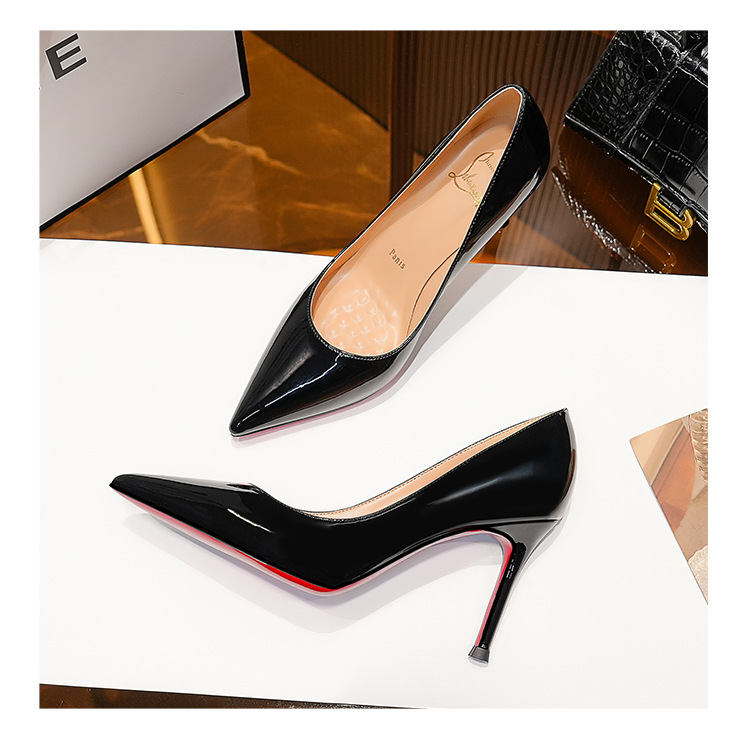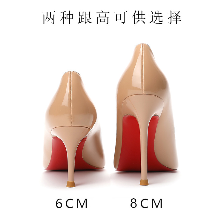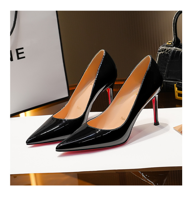 유럽과 미국의 CL 포인팅 레드 섹시 뾰족한 하이힐 사이드 빈 스틸레토 힐 싱글 신발 블랙 얕은 여성용 신발 10cm스토어 가기