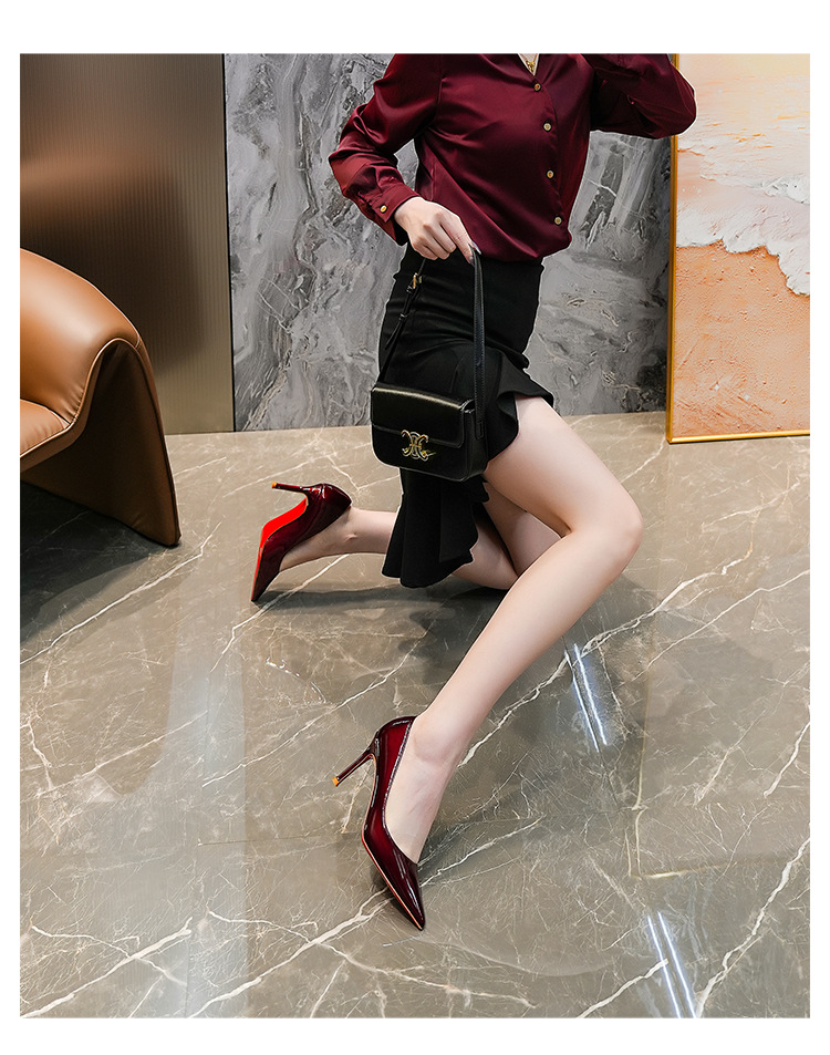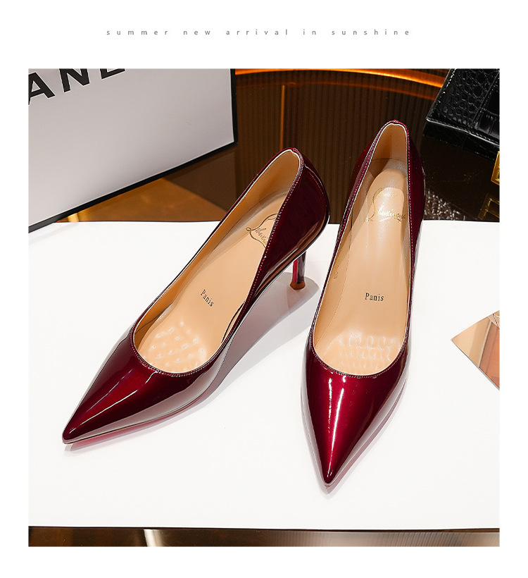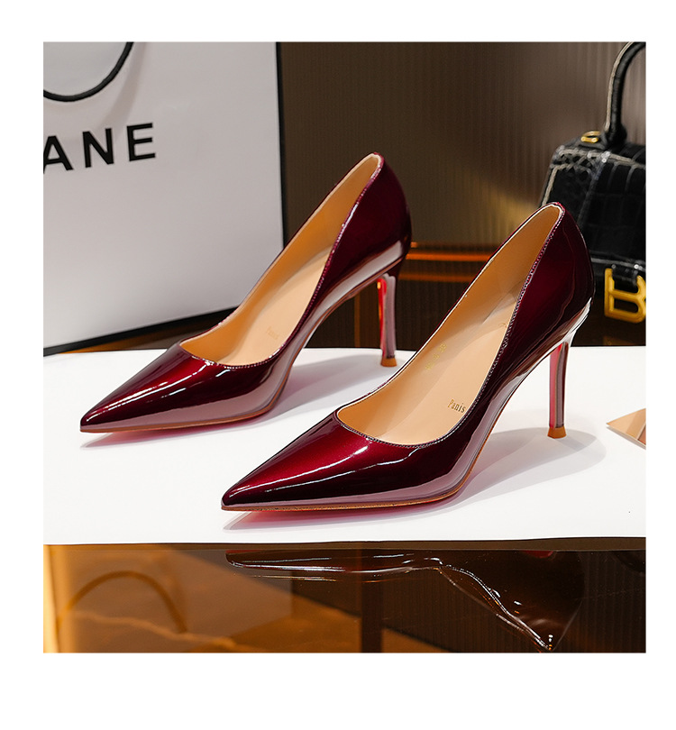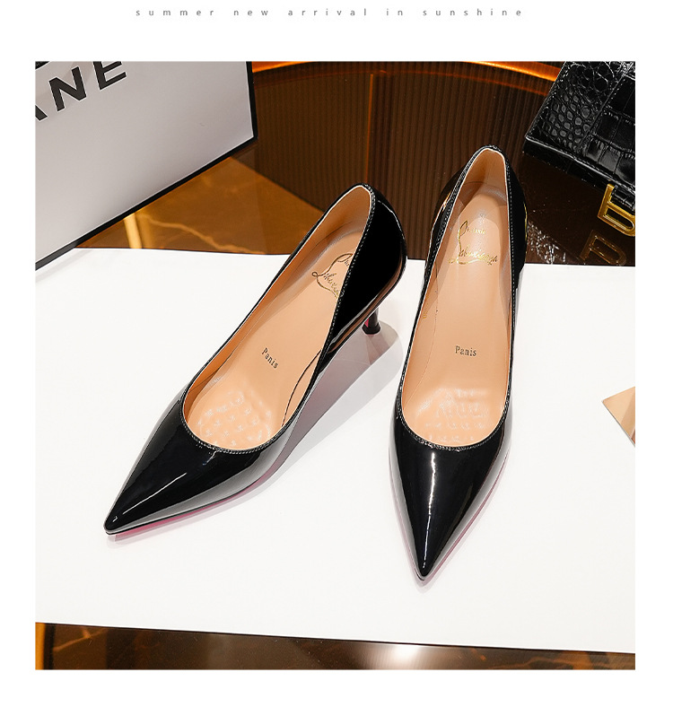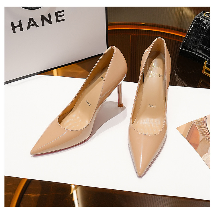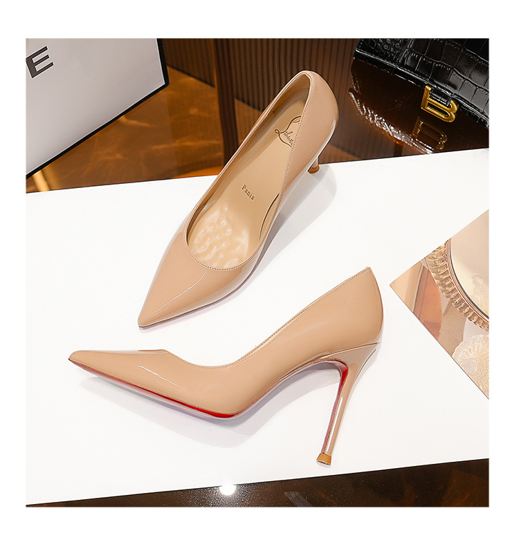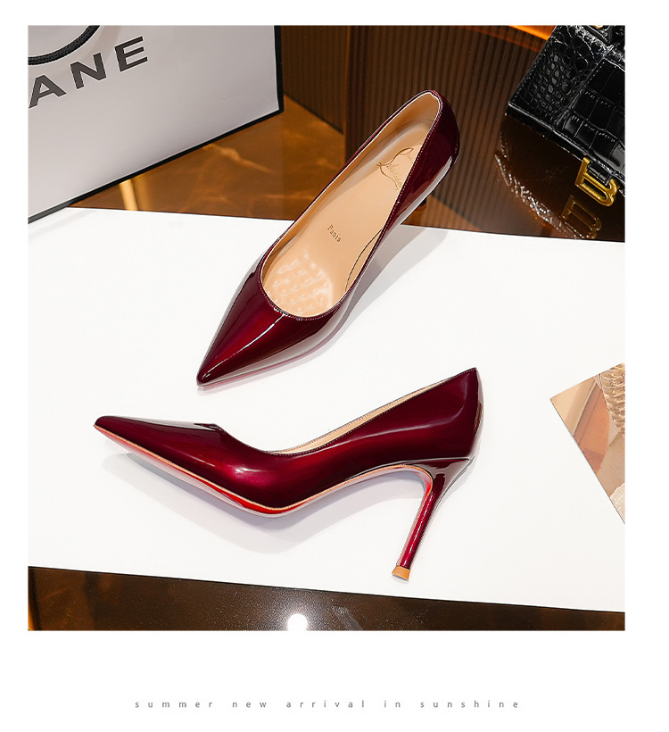유럽과 미국의 CL 포인팅 레드 섹시 뾰족한 하이힐 사이드 빈 스틸레토 힐 싱글 신발 블랙 얕은 여성용 신발 10cm스토어 가기