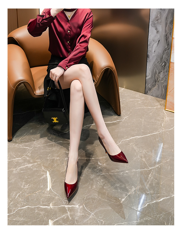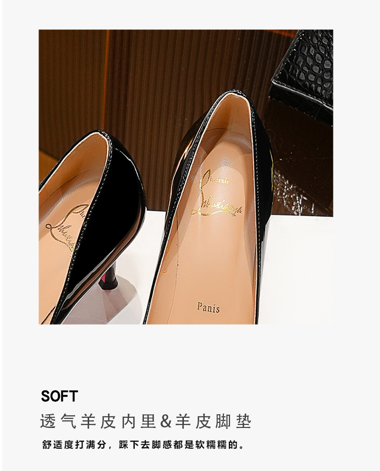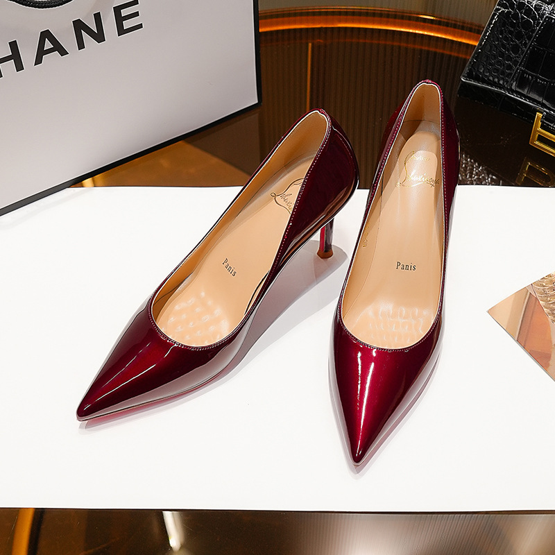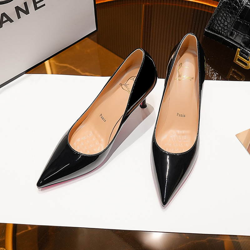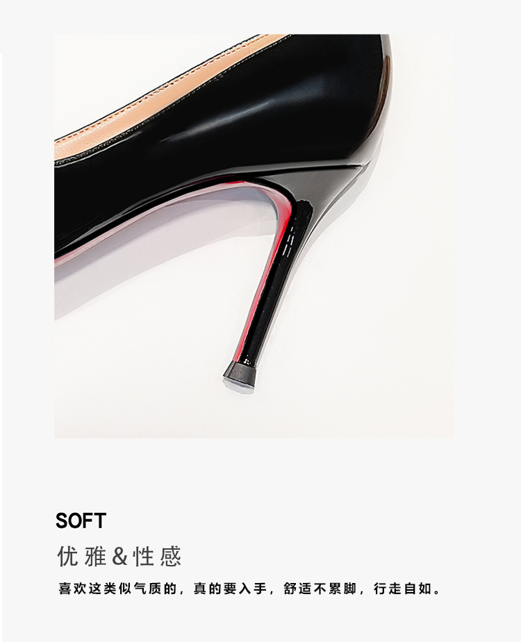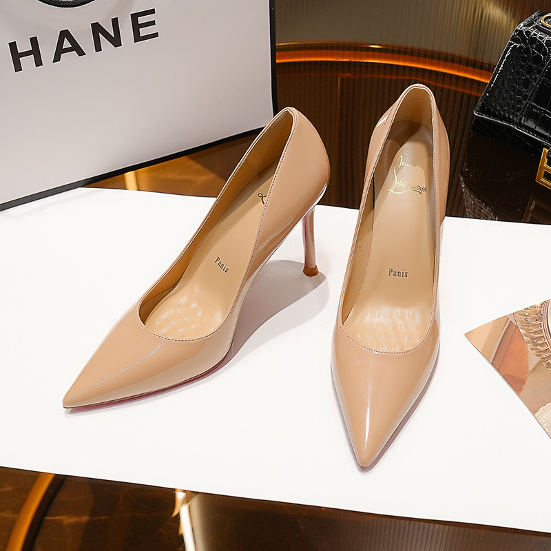 유럽과 미국의 CL 포인팅 레드 섹시 뾰족한 하이힐 사이드 빈 스틸레토 힐 싱글 신발 블랙 얕은 여성용 신발 10cm스토어 가기