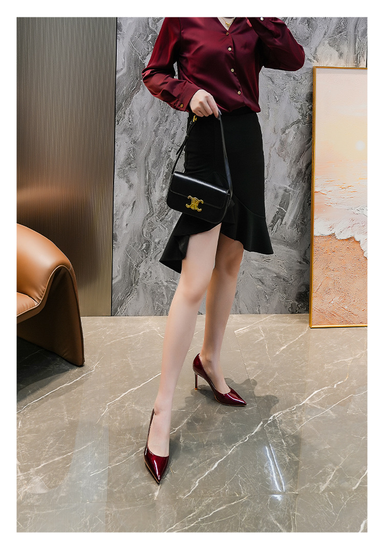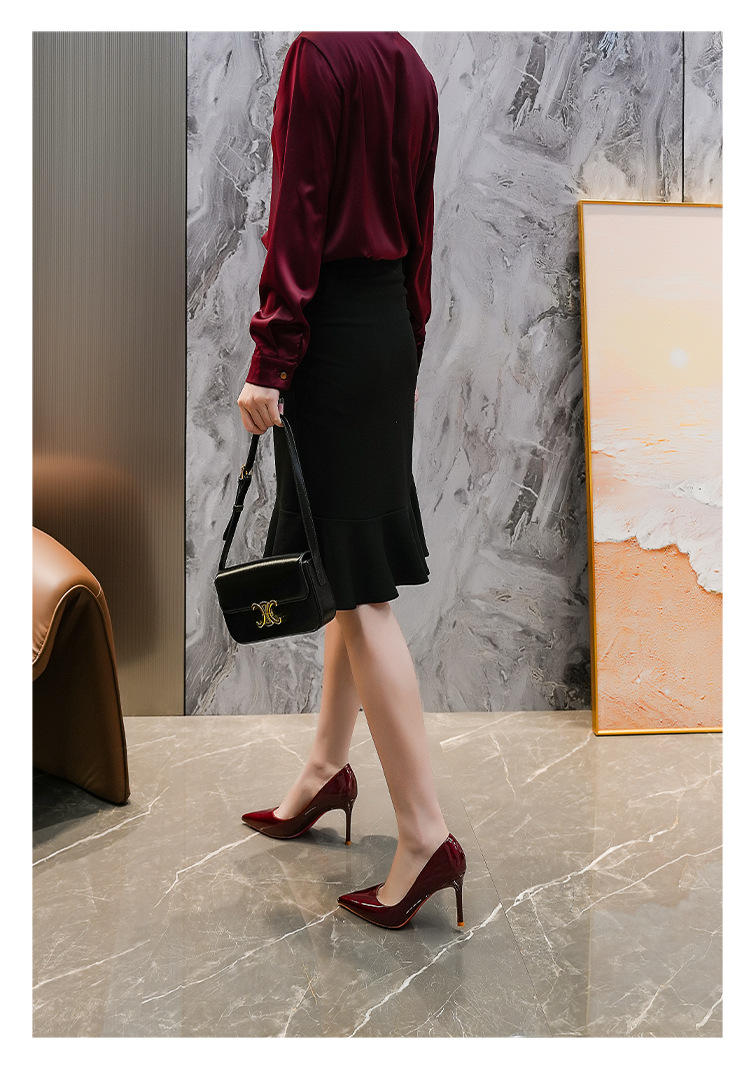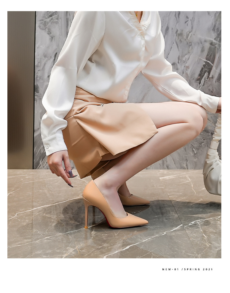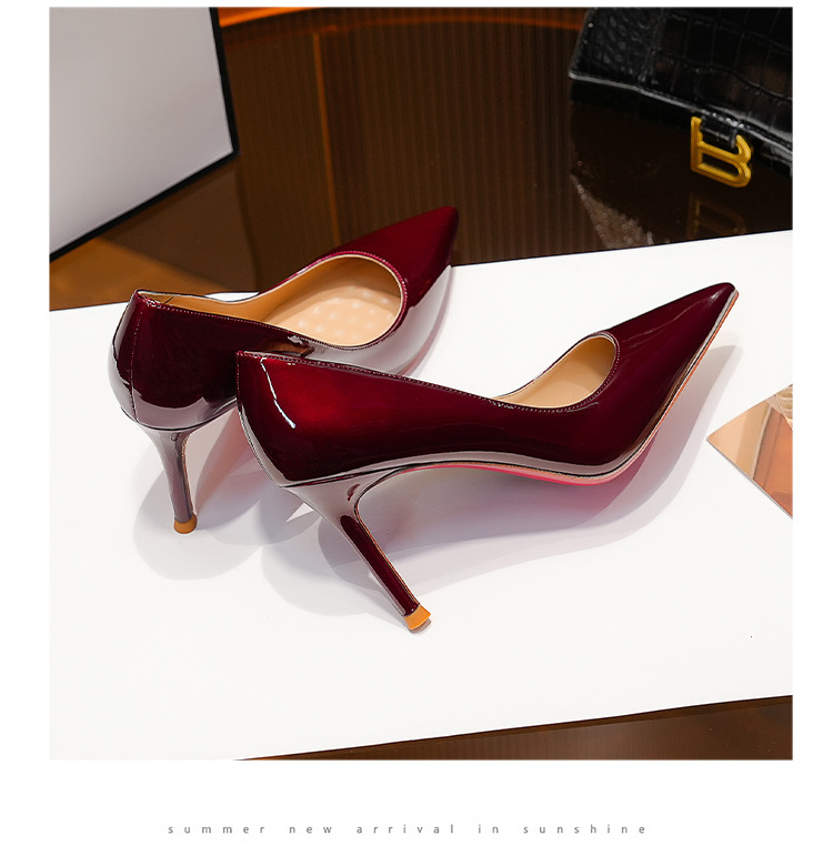 유럽과 미국의 CL 포인팅 레드 섹시 뾰족한 하이힐 사이드 빈 스틸레토 힐 싱글 신발 블랙 얕은 여성용 신발 10cm