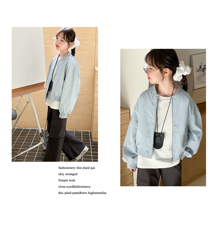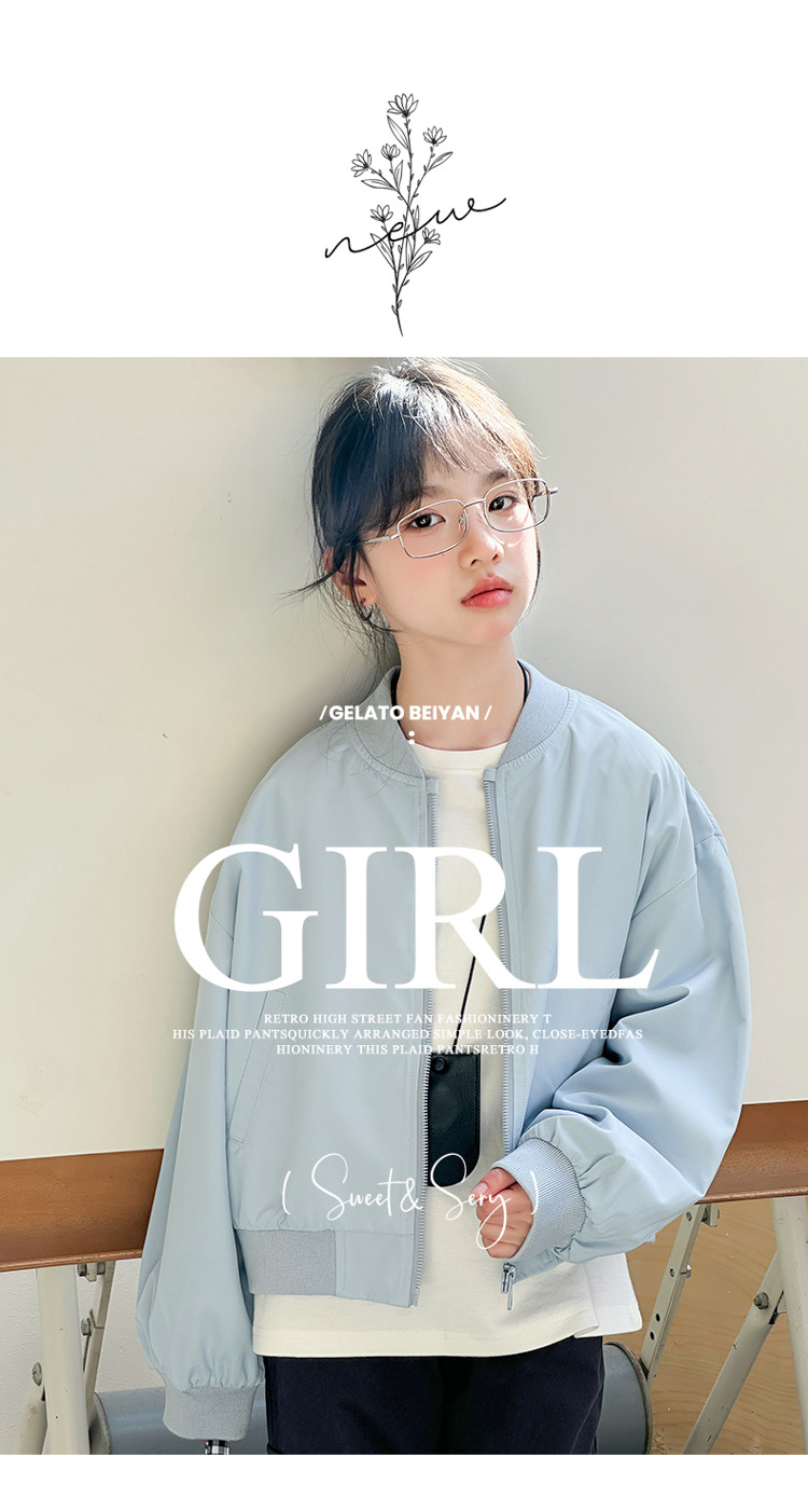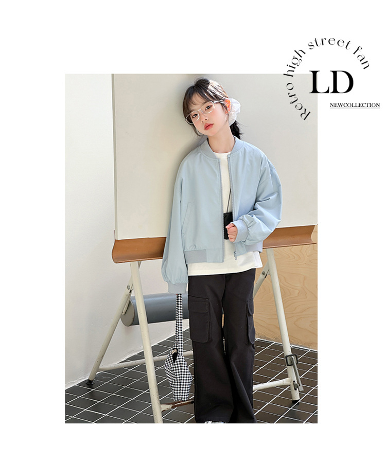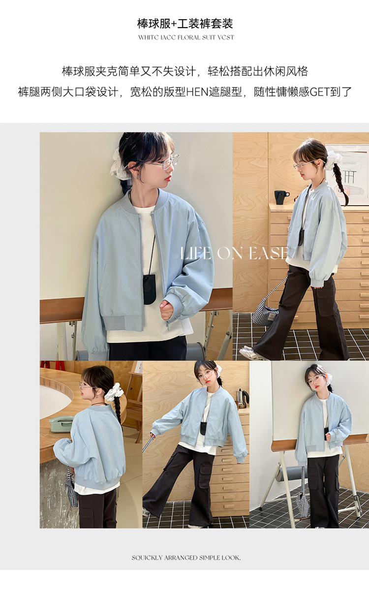 소녀 쇼트 코트 봄 2025 새로운 어린이 트렌디 쿨웨어 중대형 어린이 야구 세트 느슨한 재킷 탑스토어 가기