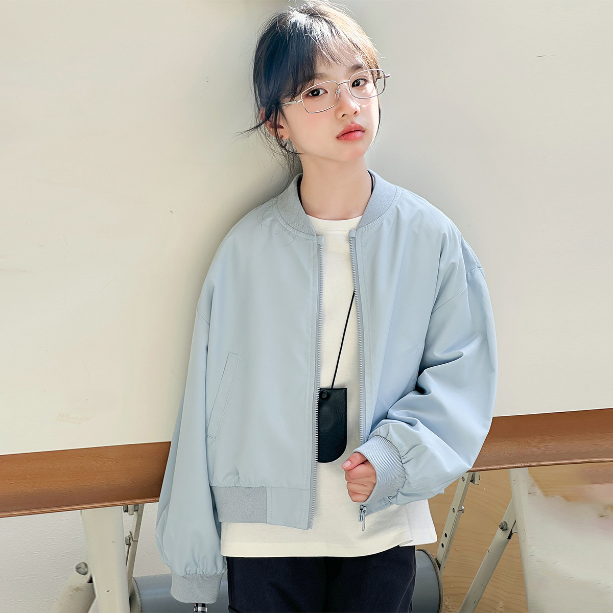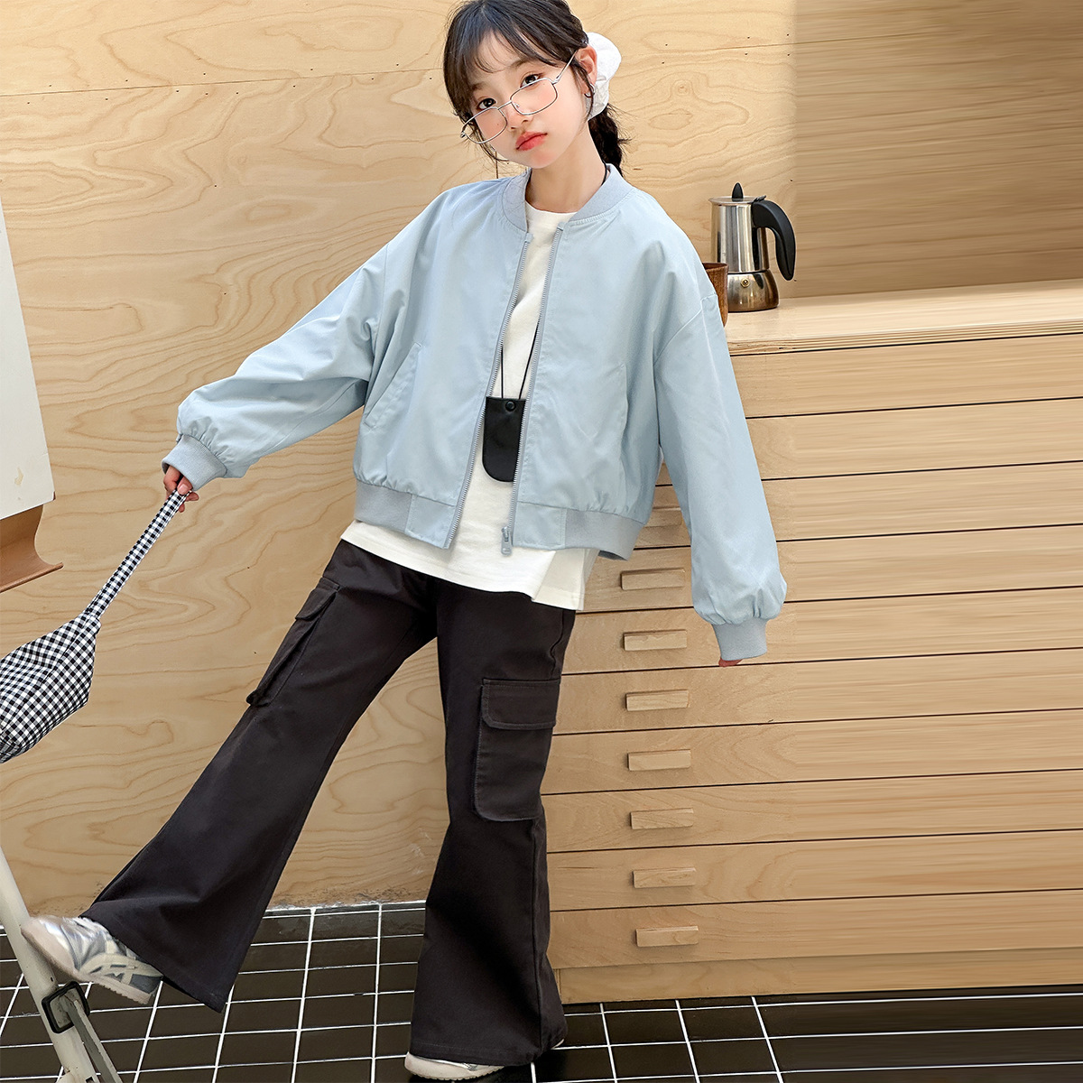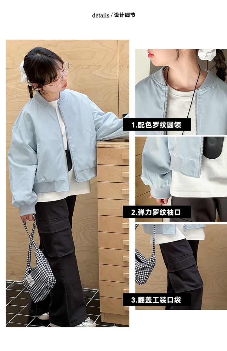 소녀 쇼트 코트 봄 2025 새로운 어린이 트렌디 쿨웨어 중대형 어린이 야구 세트 느슨한 재킷 탑스토어 가기