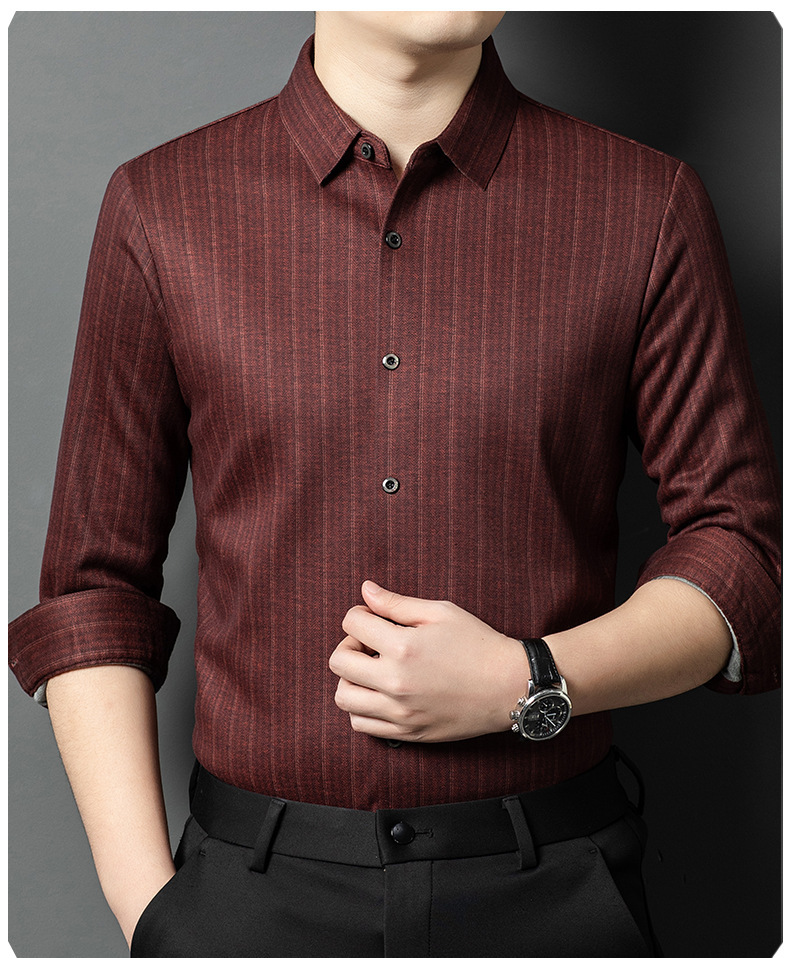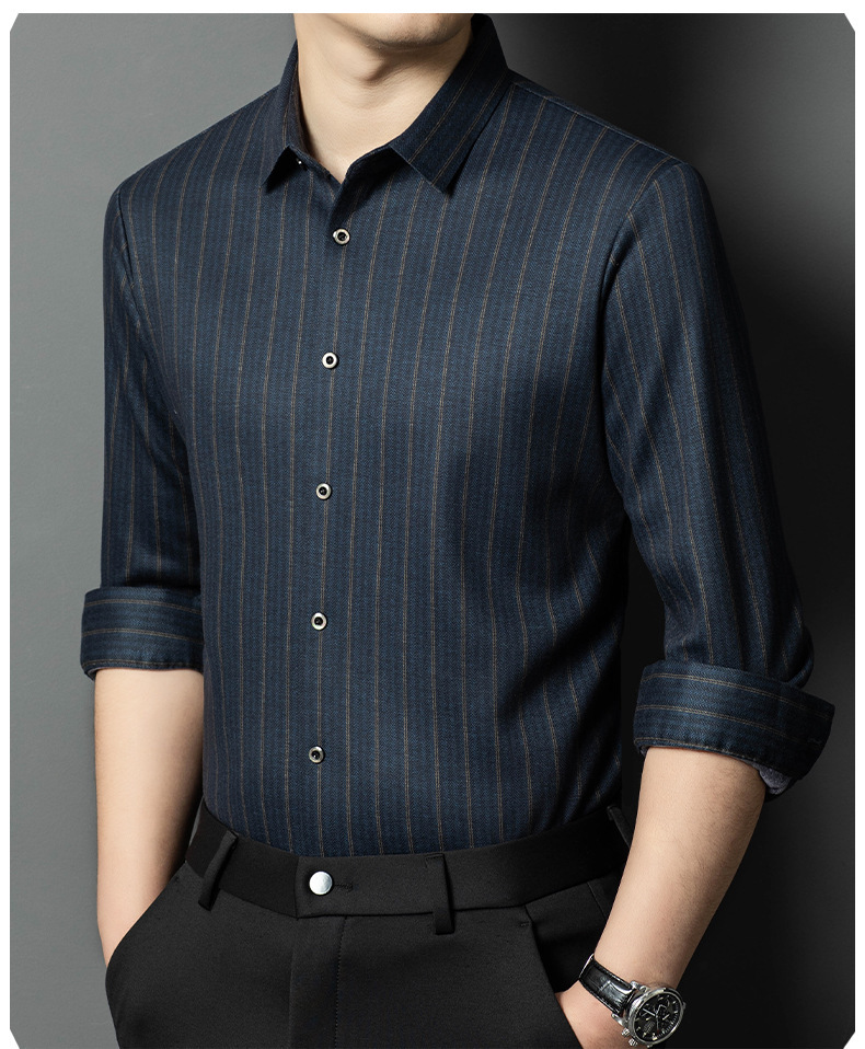 겨울 새로운 양모 뽕나무 실크 셔츠 남자의 기모 두꺼운 하이 퀄리티 줄무늬 비 마킹 양모 따뜻한 셔츠스토어 가기