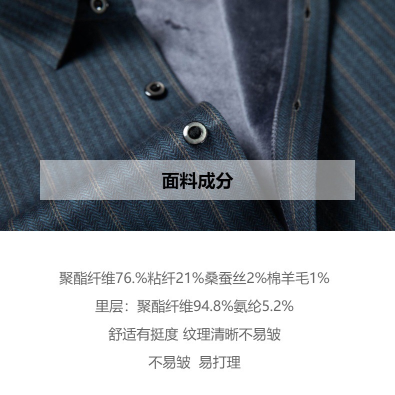 겨울 새로운 양모 뽕나무 실크 셔츠 남자의 기모 두꺼운 하이 퀄리티 줄무늬 비 마킹 양모 따뜻한 셔츠