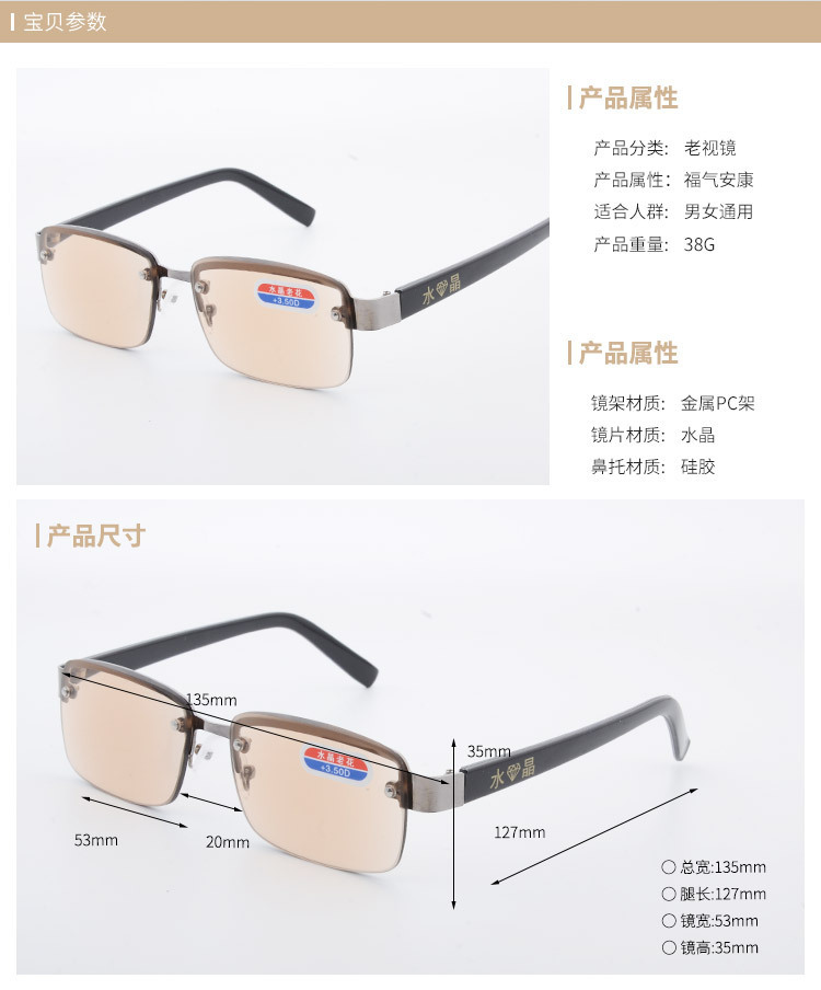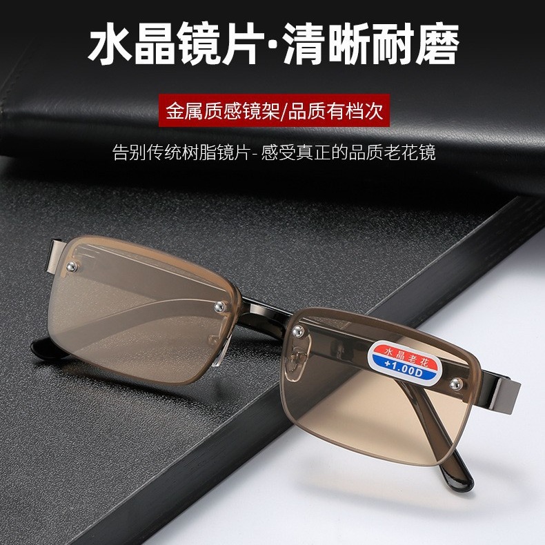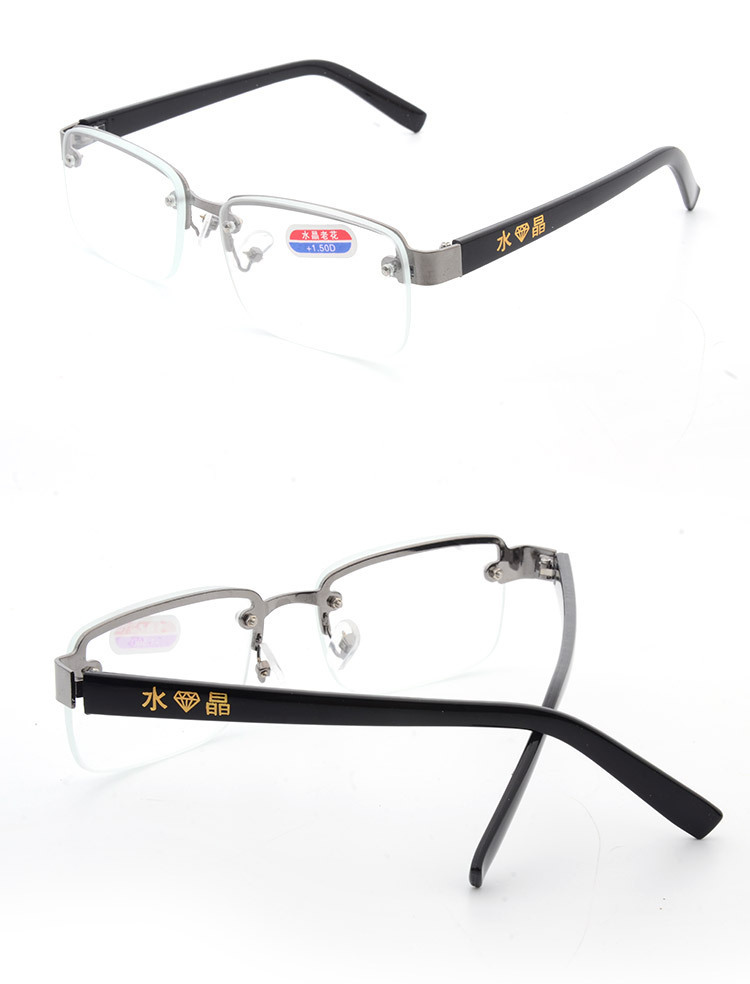 레트로 아트 안티 블루 라이트 독서 안경 동중국 해 크리스탈 금속 하프 프레임 천공 유리 안경 포장 도매스토어 가기