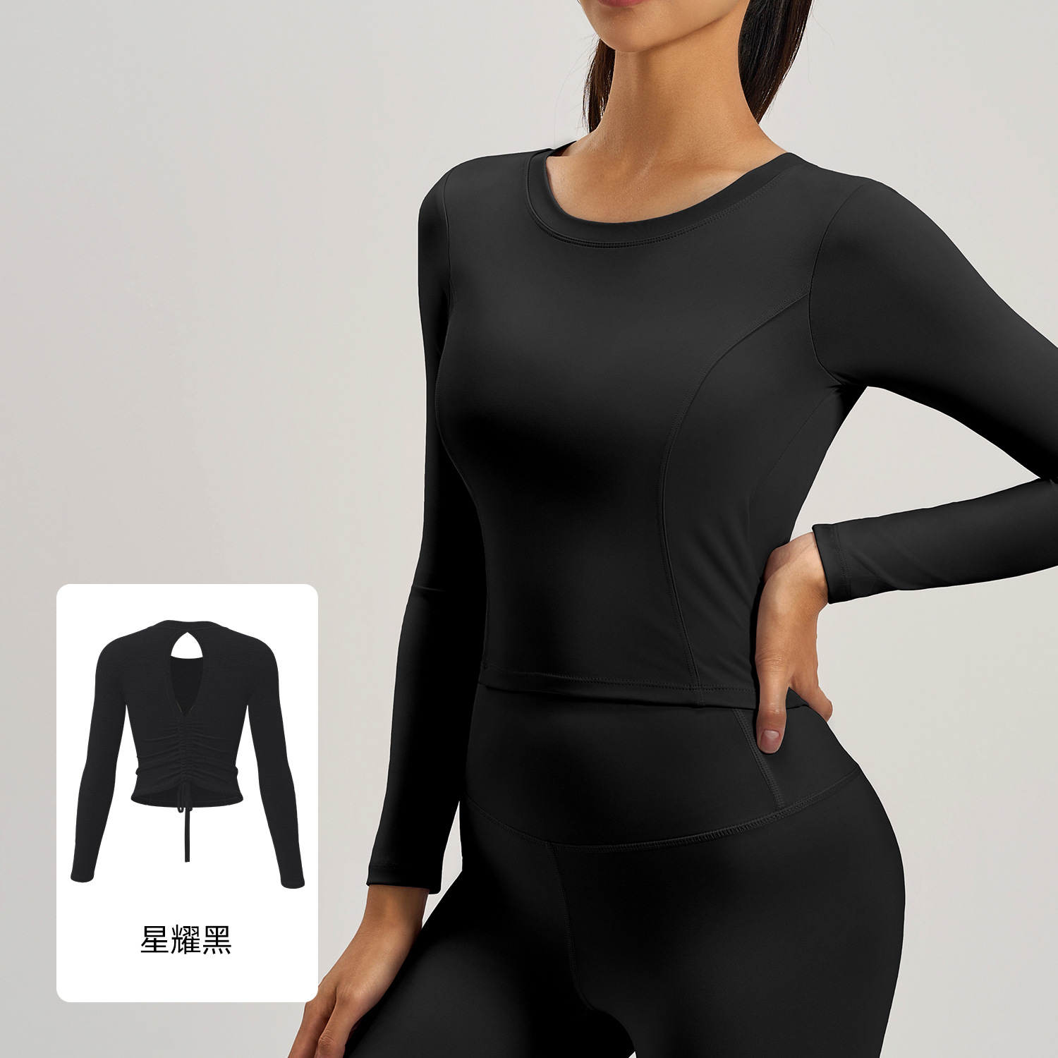 Juyitang New Beauty Back Yoga Clothes 여성용 플리츠 슬림 피트니스 탑 가슴 패드 러닝 스포츠 롱 슬리브