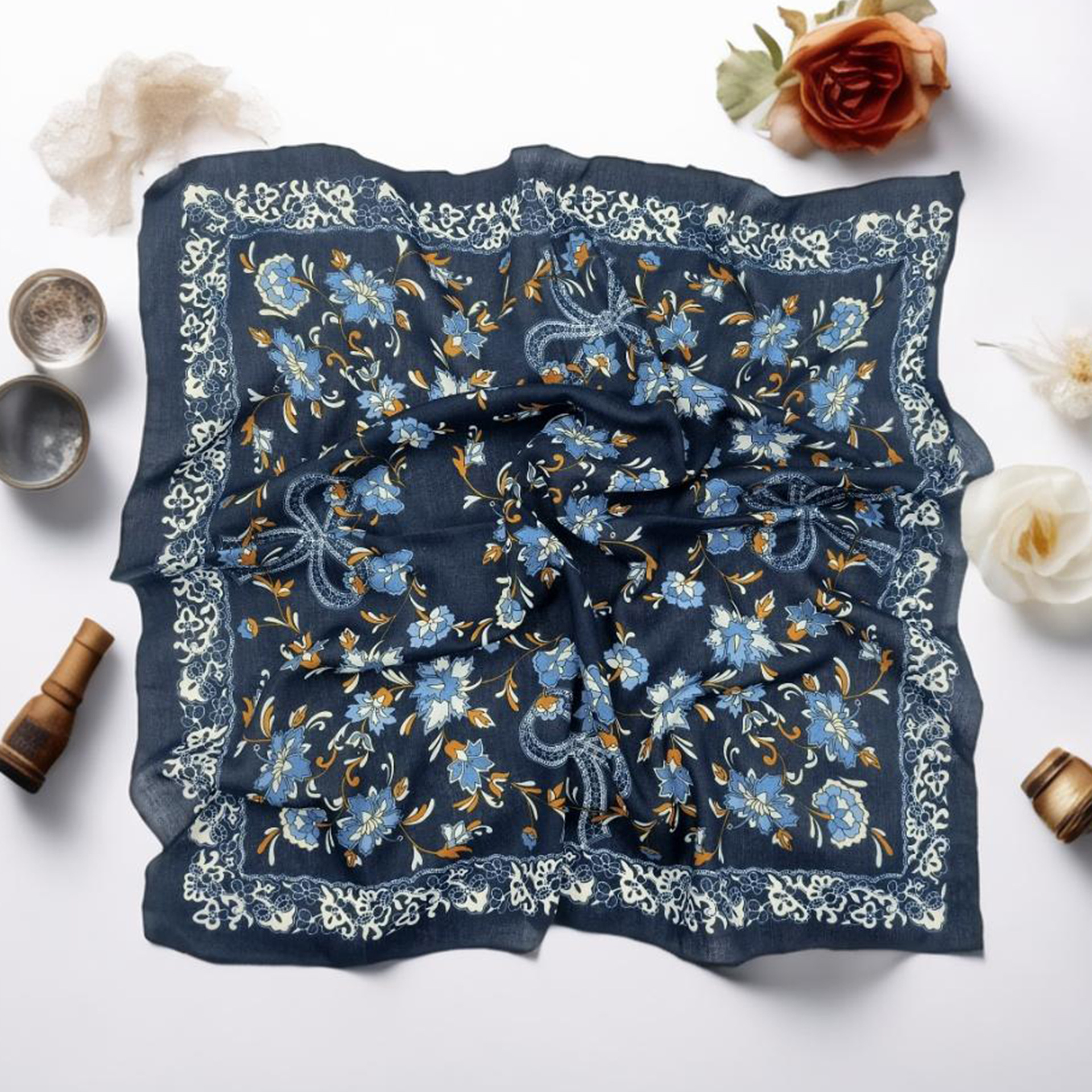 봄과 가을 따뜻한 기질 레트로 티베트 민족 스타일 면 및 리넨 고급 70cm 실크와 울 스카프 여성 벨벳 작은 광장스토어 가기