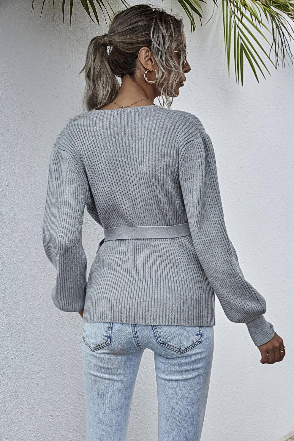 아마존 알리 익스프레스 슬림 핏 섹시한 V 넥 타이트 웨이스트 레이스 업 니트웨어 2024 가을/겨울 크로스 가슴 포장 스웨터