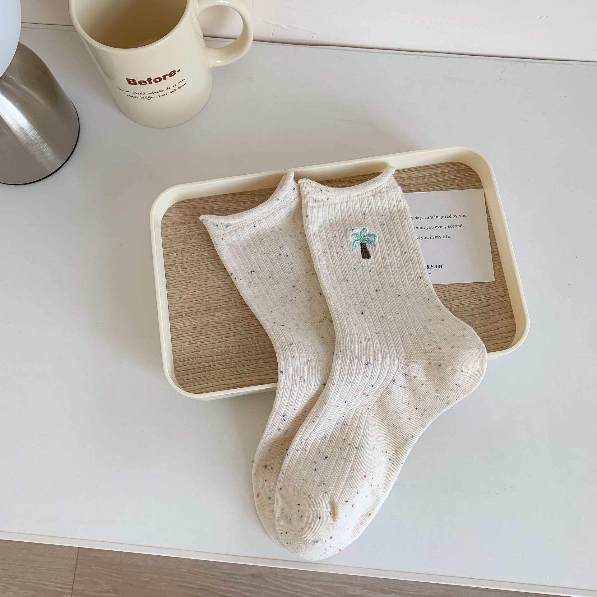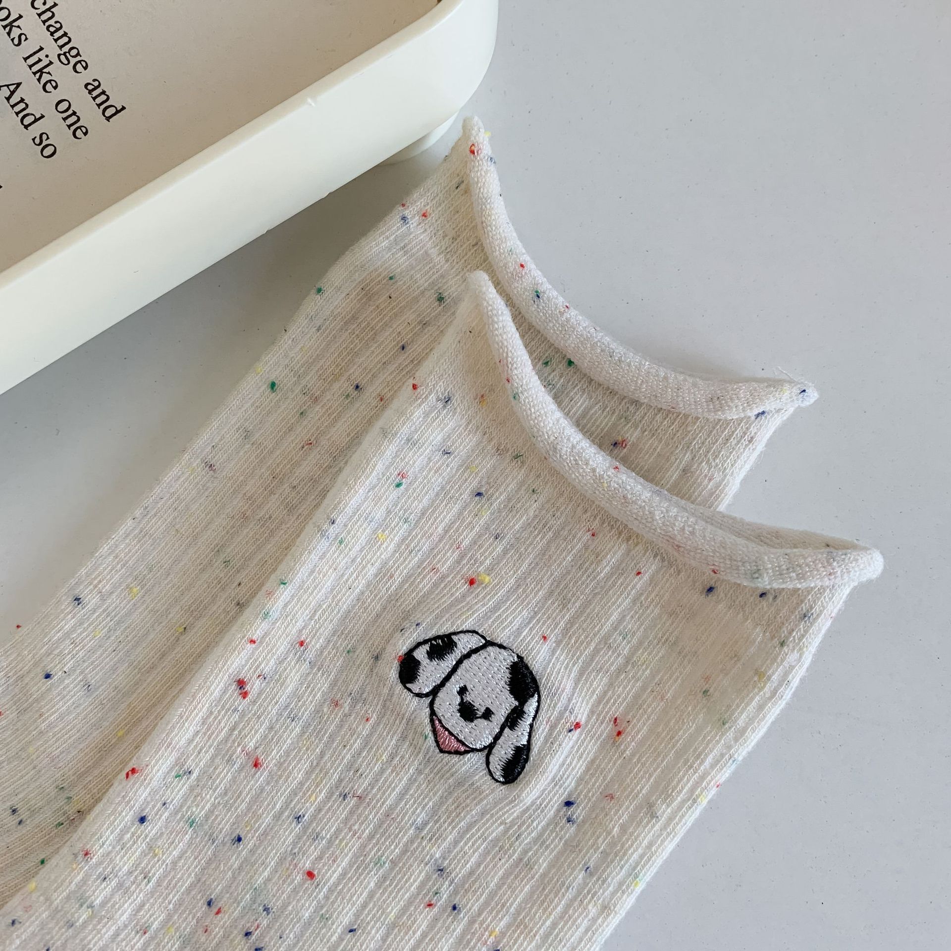 가을과 겨울 컬링 자수 튜브 여성 양말 아이보리 캐주얼 올 매치 여자 양말 학생 스타일 만화 따뜻한 양말