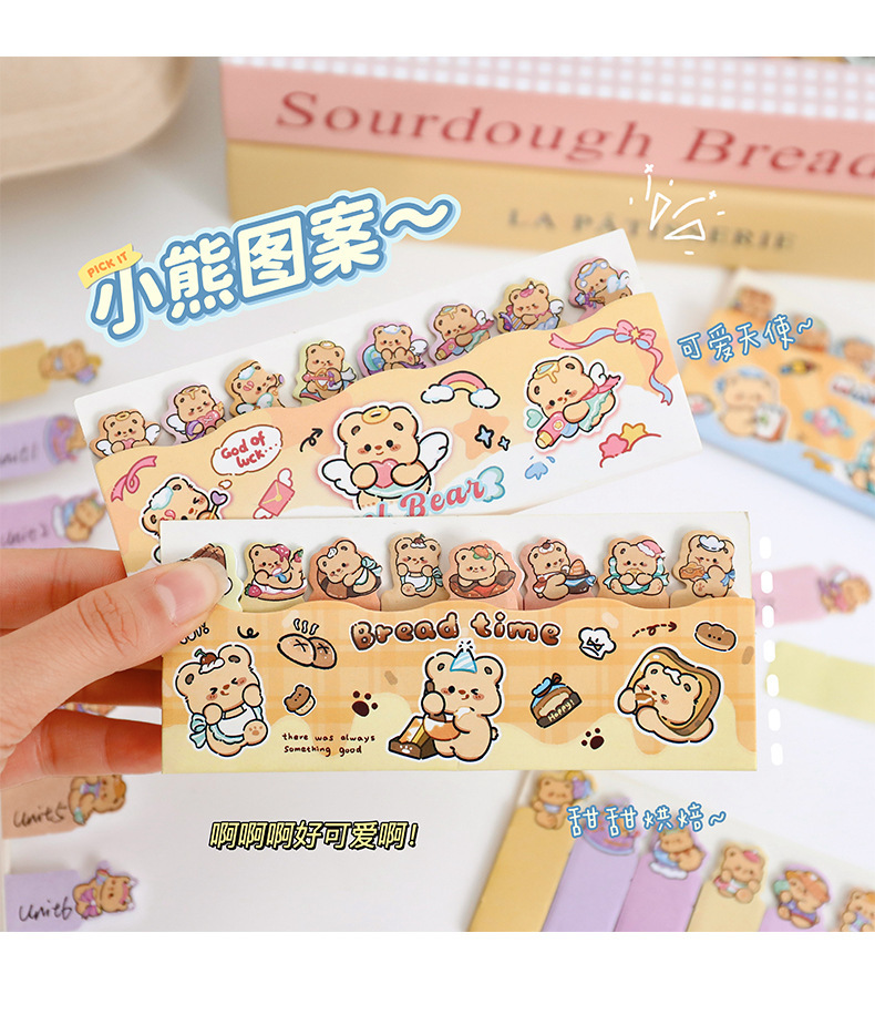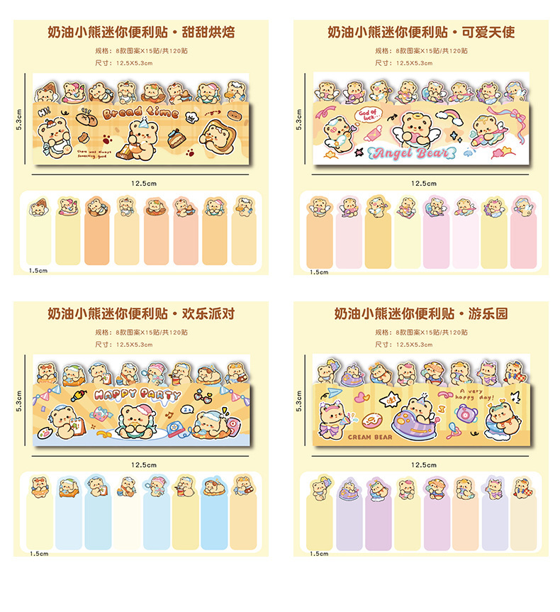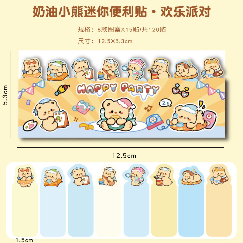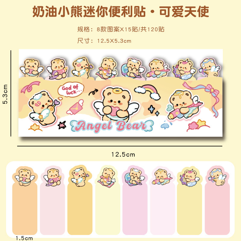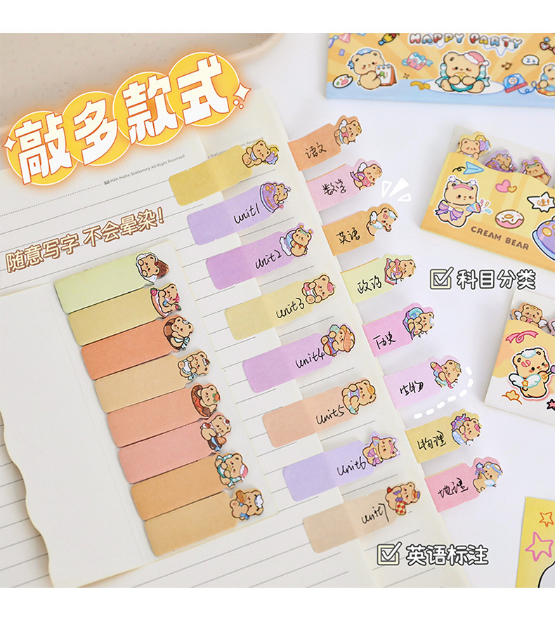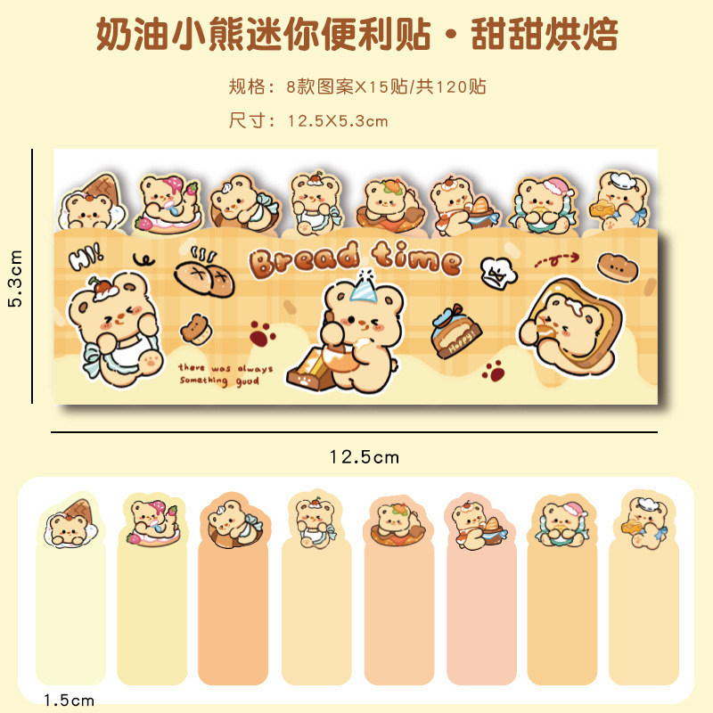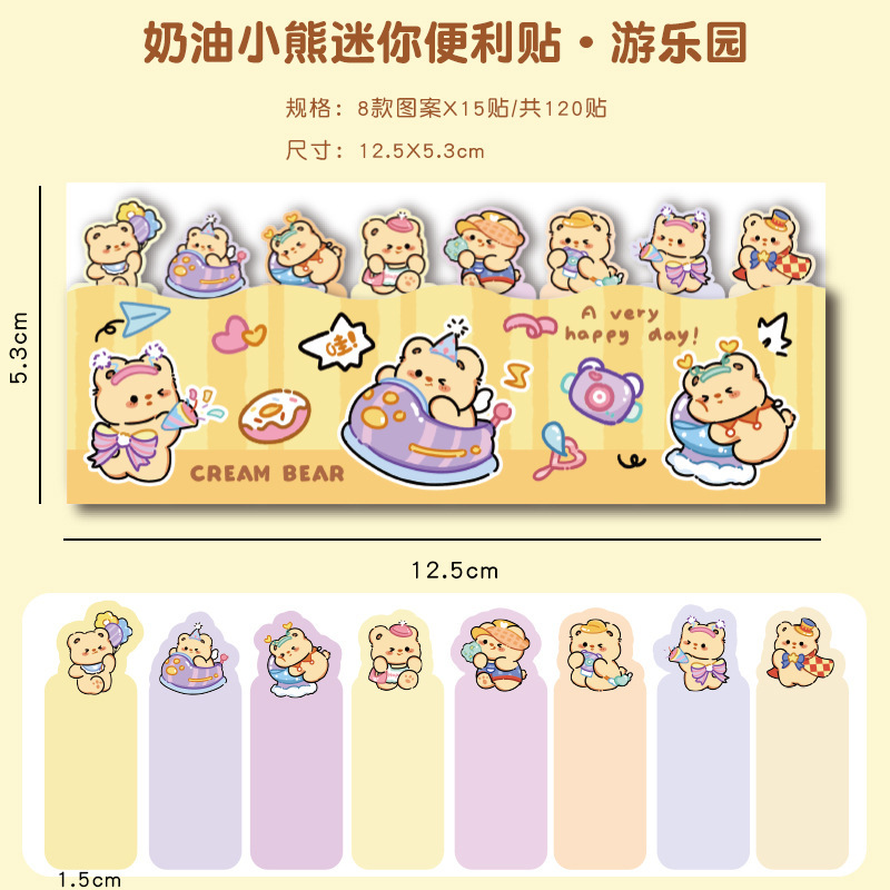귀여운 곰 포스트잇 노트 크리에이티브 크림 베어 줄 앉아 N 스티커 만화 스티커 색인 메시지 종이스토어 가기