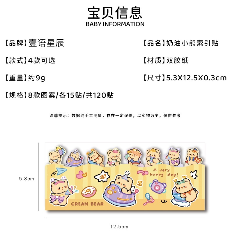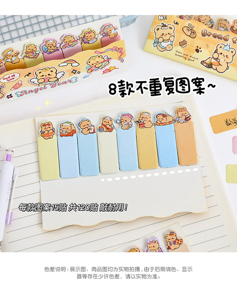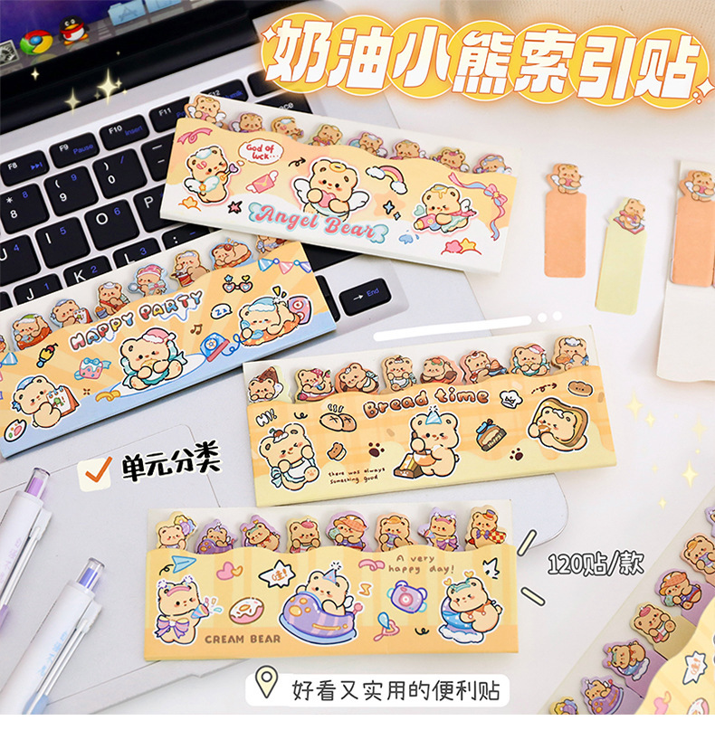 귀여운 곰 포스트잇 노트 크리에이티브 크림 베어 줄 앉아 N 스티커 만화 스티커 색인 메시지 종이