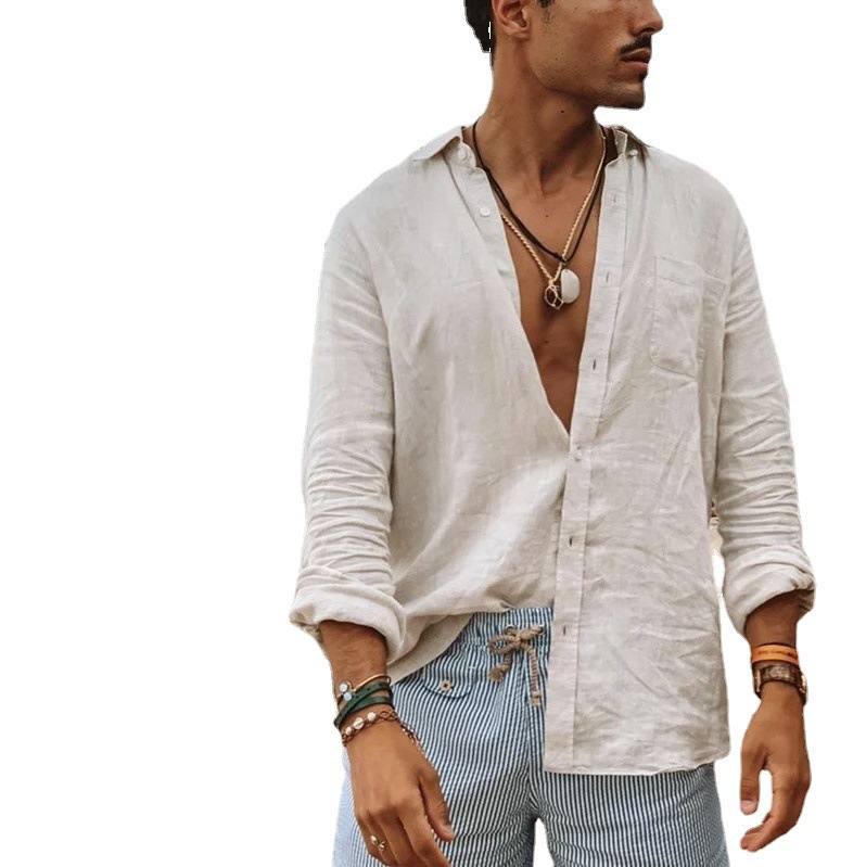 외국 무역 유럽 사이즈 2025 가을 신상 유럽 및 미국 남성 패션 트렌디 긴팔 면마 얇은 루즈핏 캐주얼 셔츠 가디건