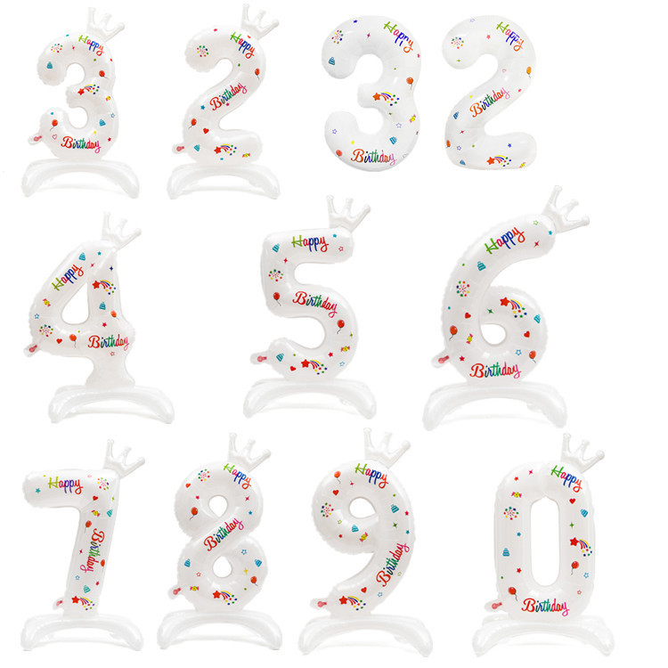 32inch 화이트 스탠딩 크라운 숫자 풍선 어린이 생일 파티 장식 소품 창의적인 숫자