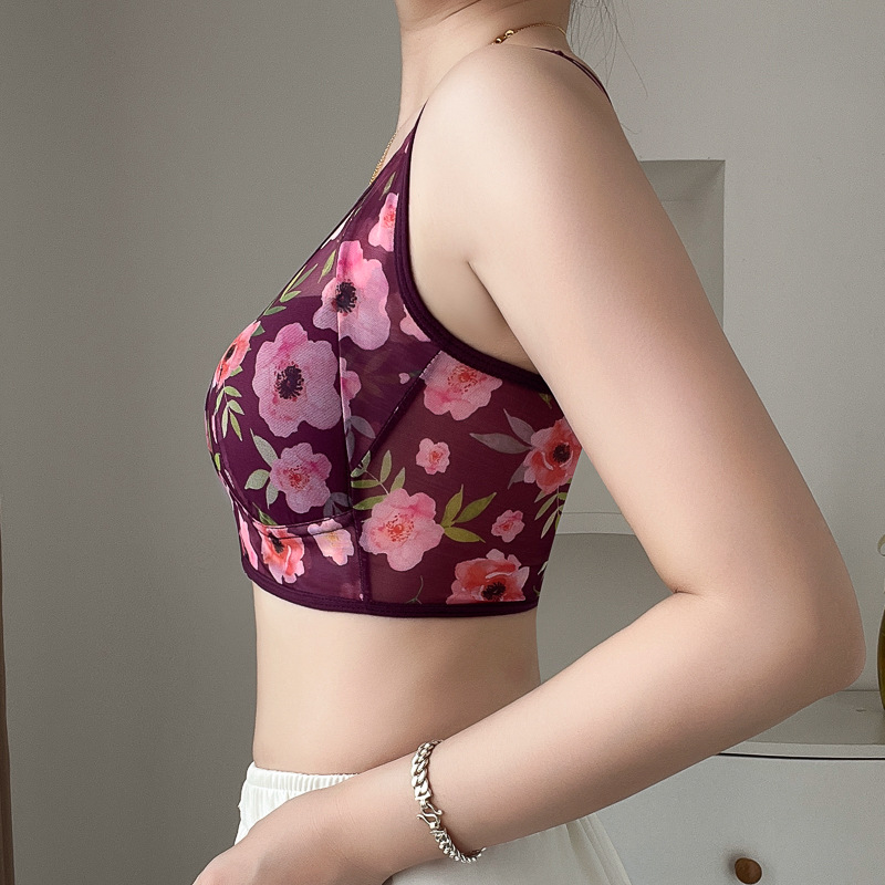 중년 및 노인 앞 버클 어머니 브래지어 레이스 프린트 속옷 안티 처짐 수집 레이스스토어 가기