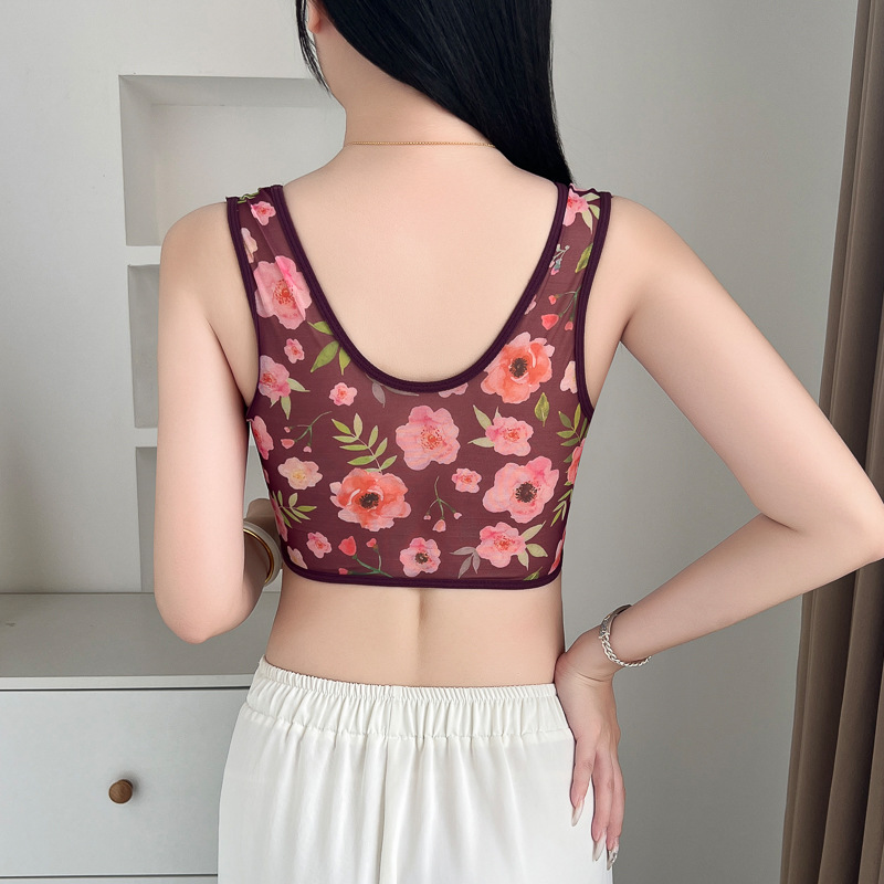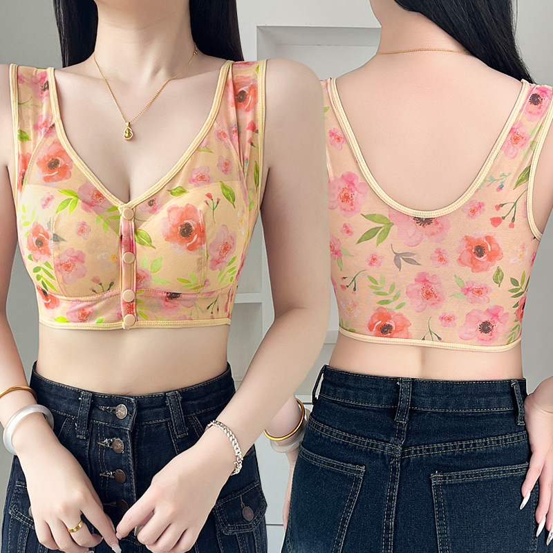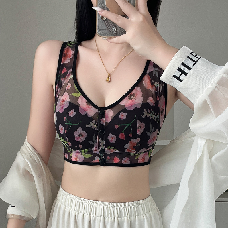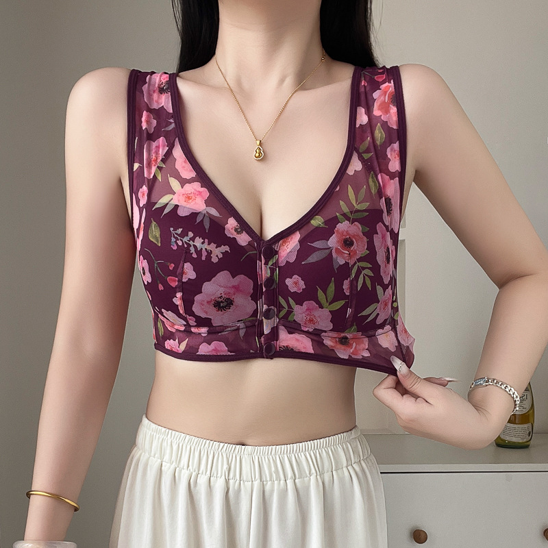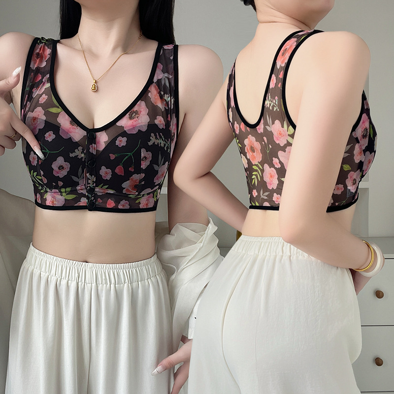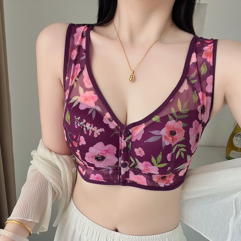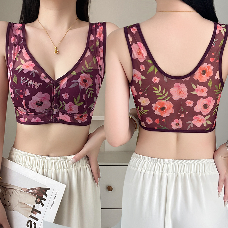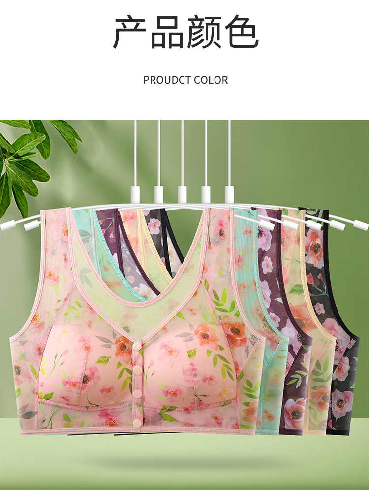 중년 및 노인 앞 버클 어머니 브래지어 레이스 프린트 속옷 안티 처짐 수집 레이스
