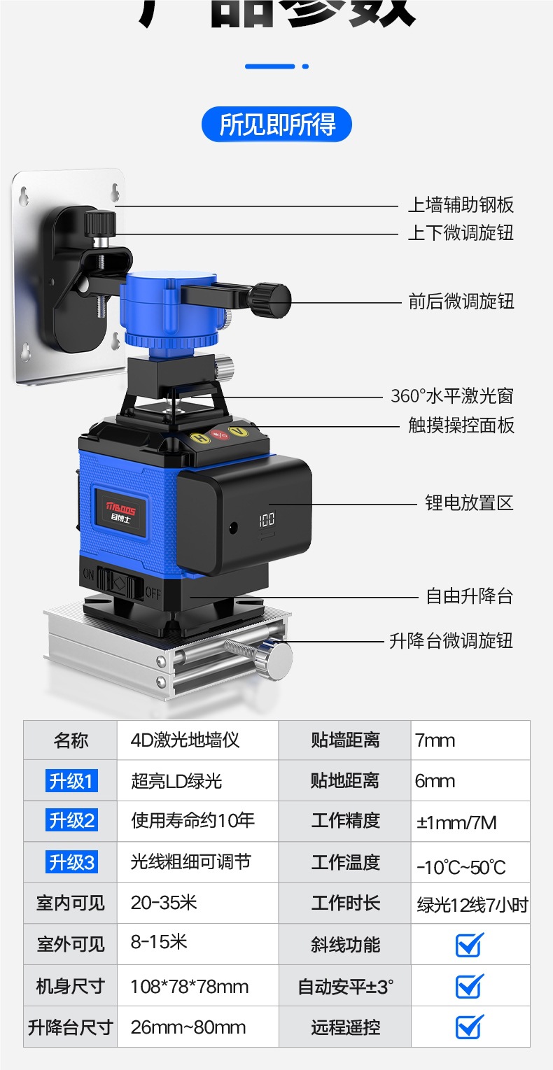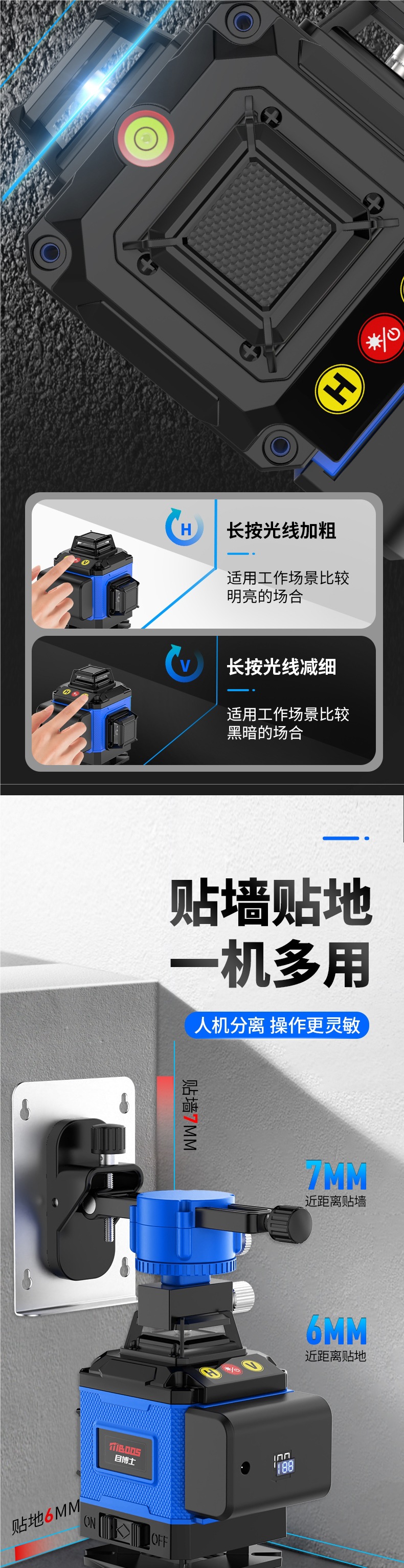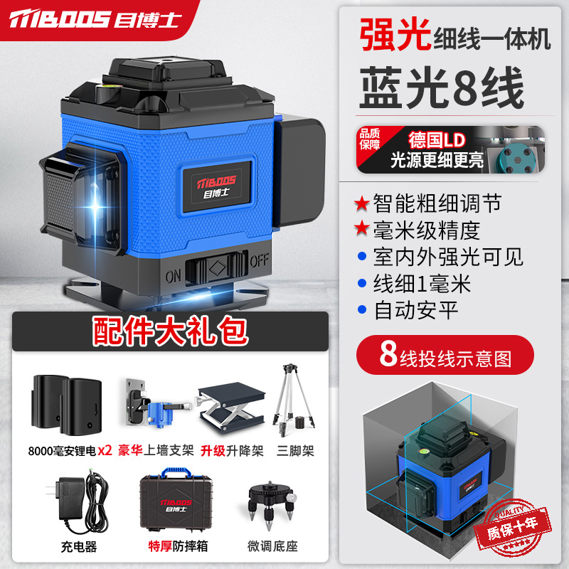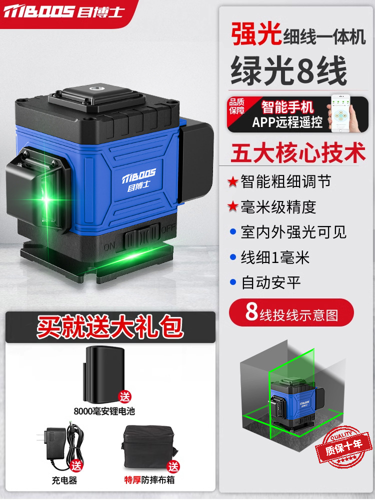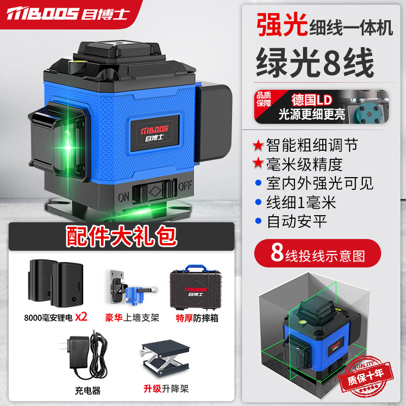 • 매우 밝은 녹색 표시등 [두께 조절 가능] 8선 듀얼 배터리 + 삼각대