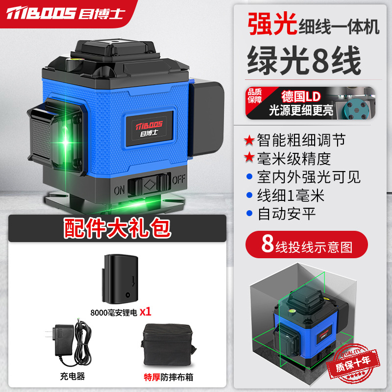 • 매우 밝은 녹색 표시등 [수입 레이저 튜브] 8선 단일 배터리