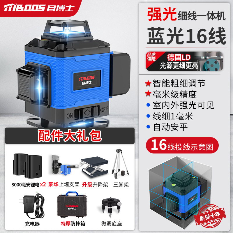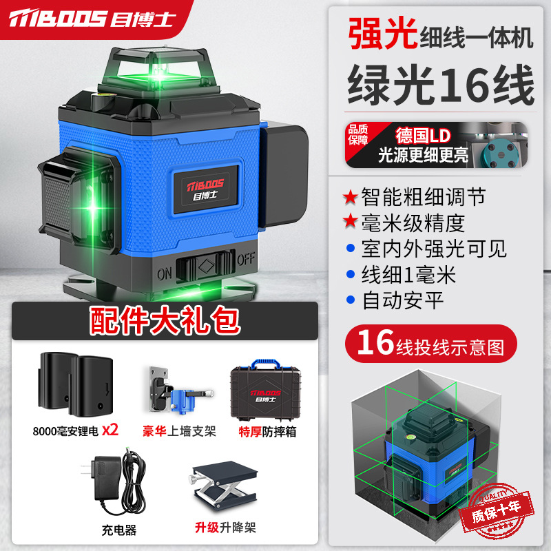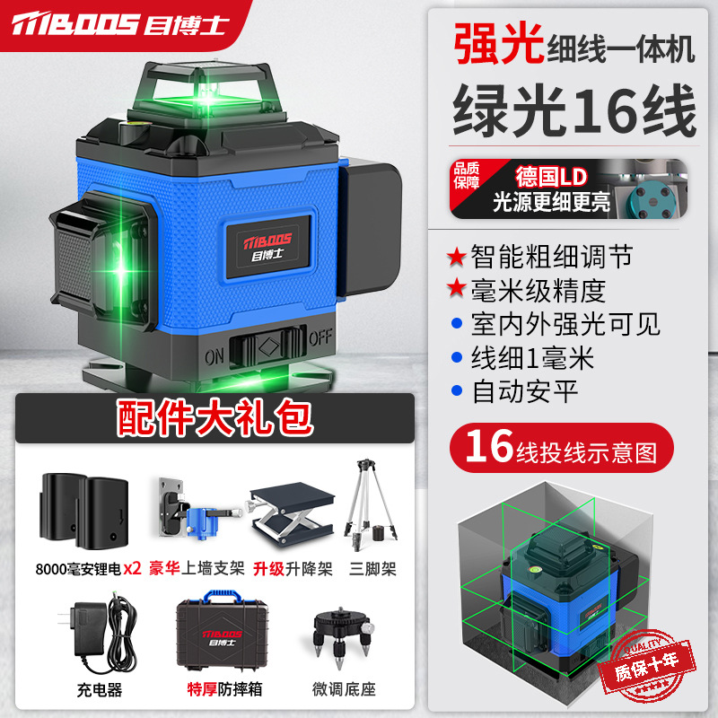 • 매우 밝은 녹색 표시등 [두께 조절 가능] 16선 듀얼 배터리 + 삼각대