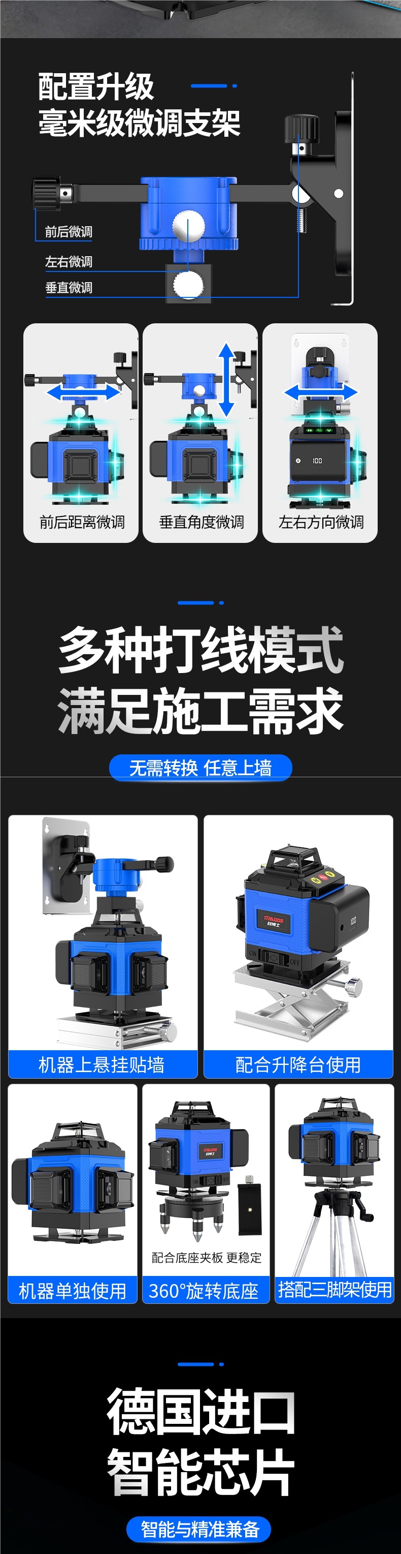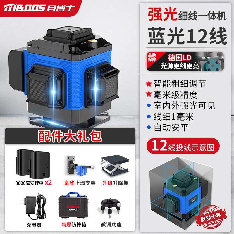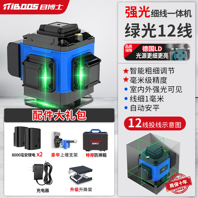 12 라인 적외선 레벨 고정밀 강한 빛 미세 라인 레이저 벽-지상 야외 녹색 자동 레벨링 수량계스토어 가기
