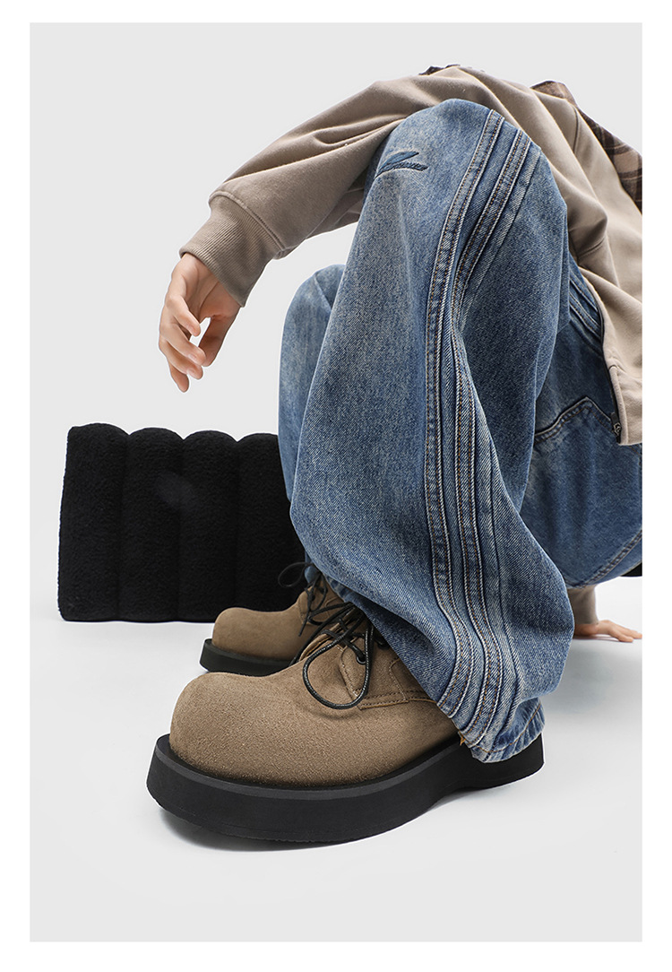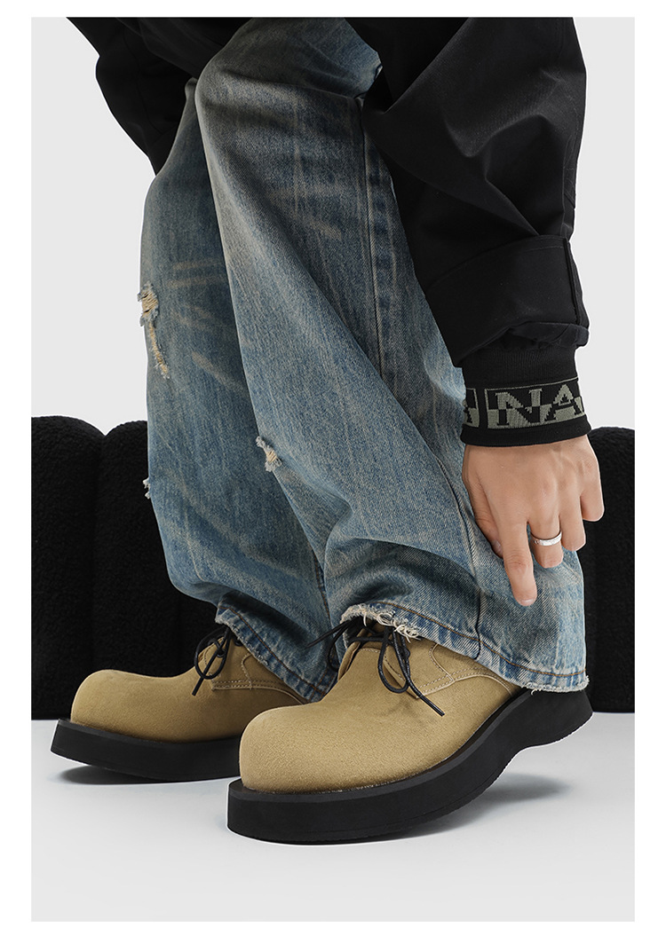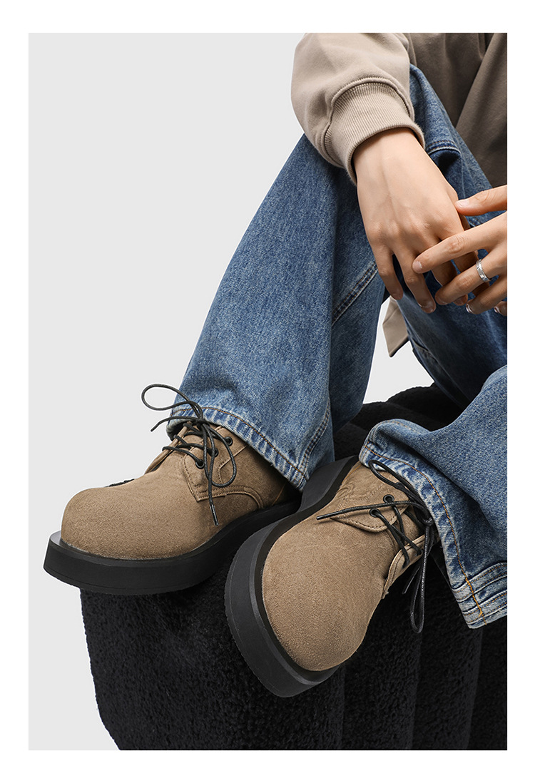 유럽과 미국의 레트로 더비 신발 하이 엔드 영국 두꺼운 단독 높이 증가 남성 신발 작업복 캐주얼 올 매치 통근 가죽 신발