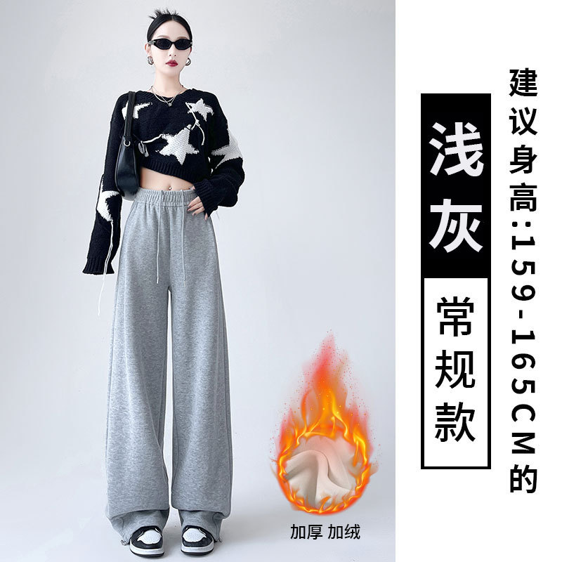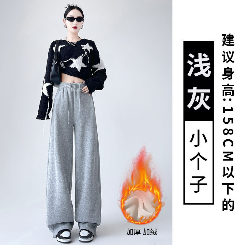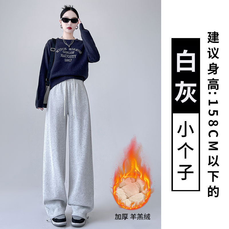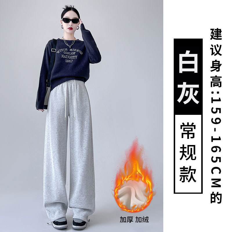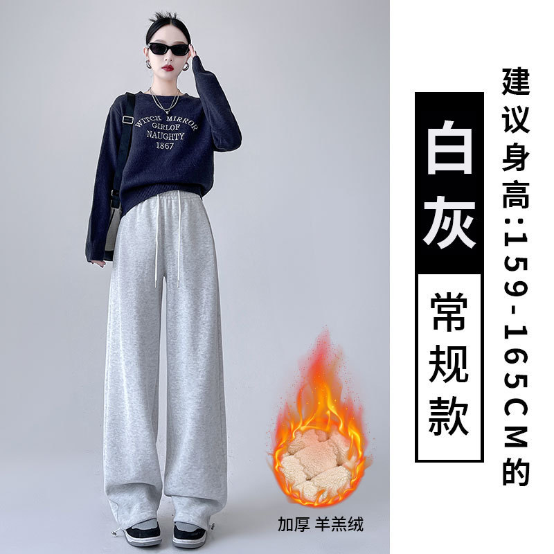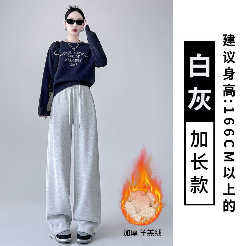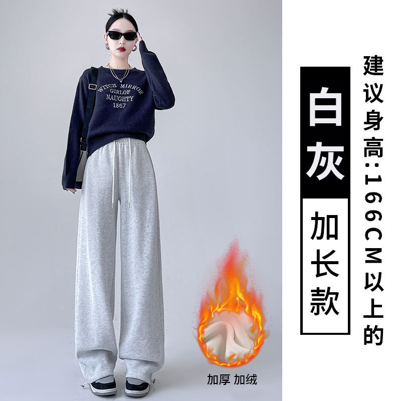 흰색 회색 캐시미어 방풍 바지 여성의 가을과 겨울 기모 두꺼운 북동쪽 코튼 팬츠 외부 착용 느슨한 따뜻한 와이드 레그 바지
