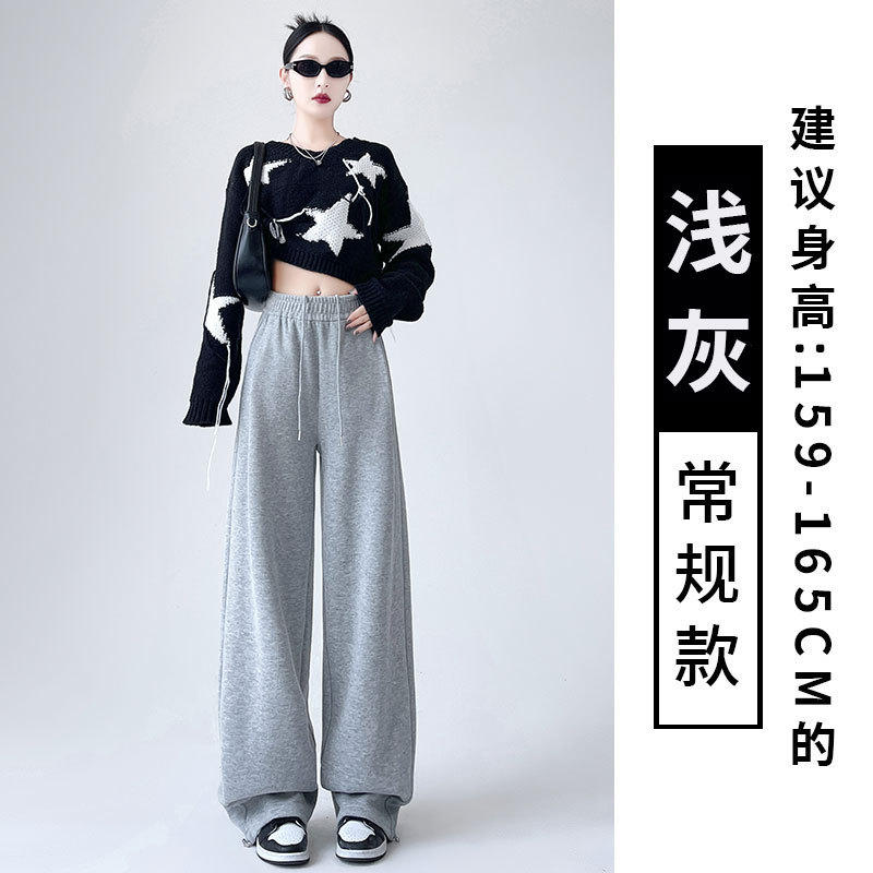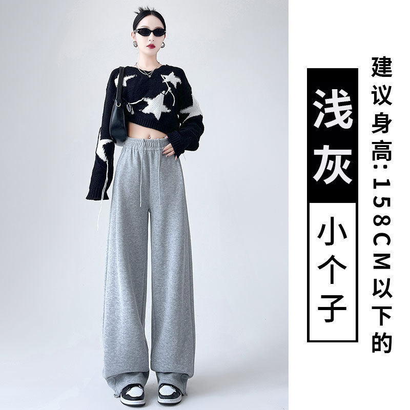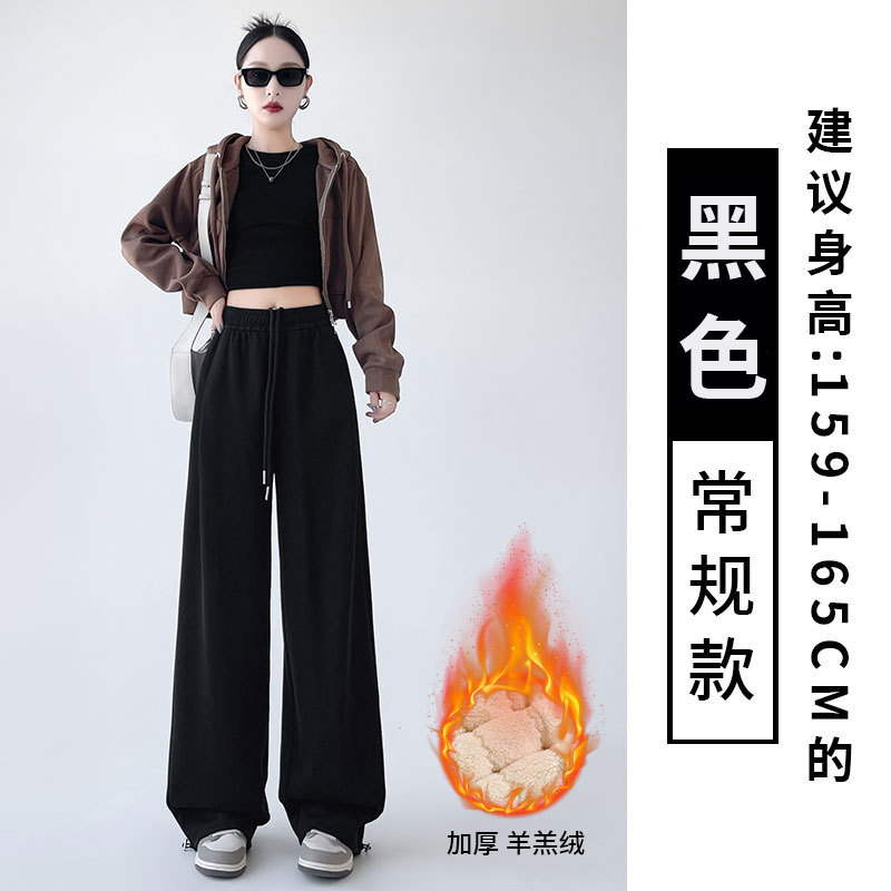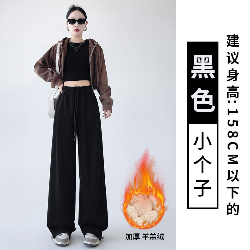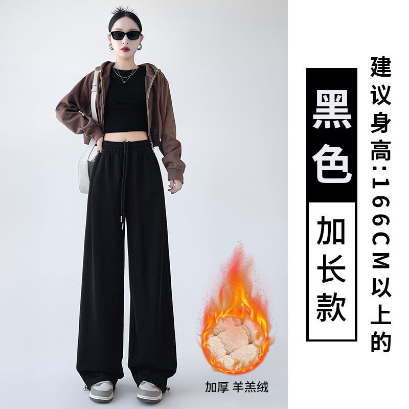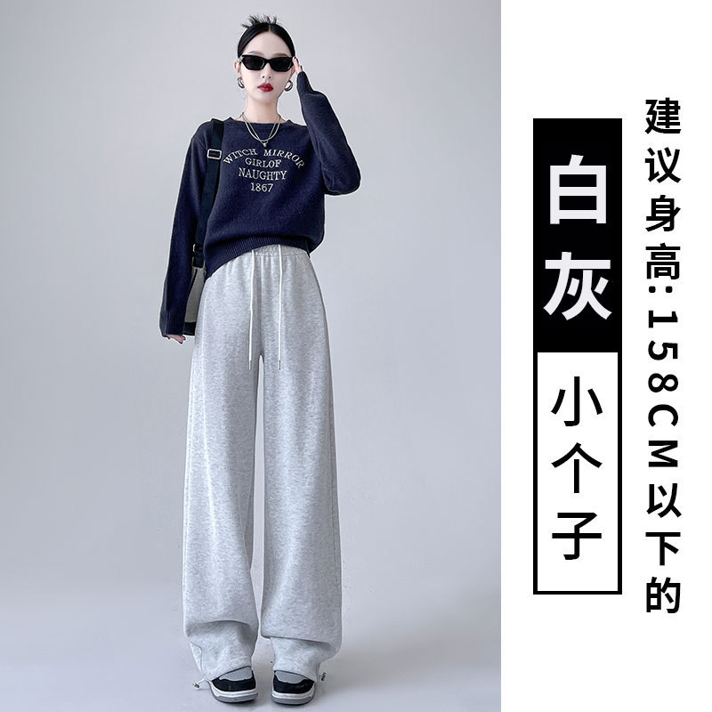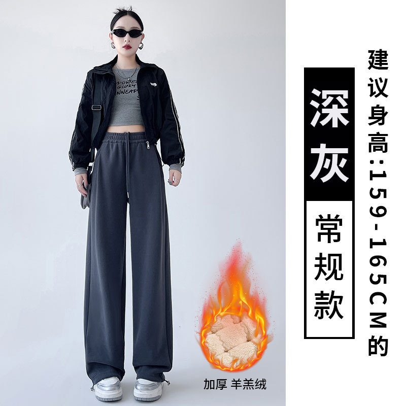 흰색 회색 캐시미어 방풍 바지 여성의 가을과 겨울 기모 두꺼운 북동쪽 코튼 팬츠 외부 착용 느슨한 따뜻한 와이드 레그 바지