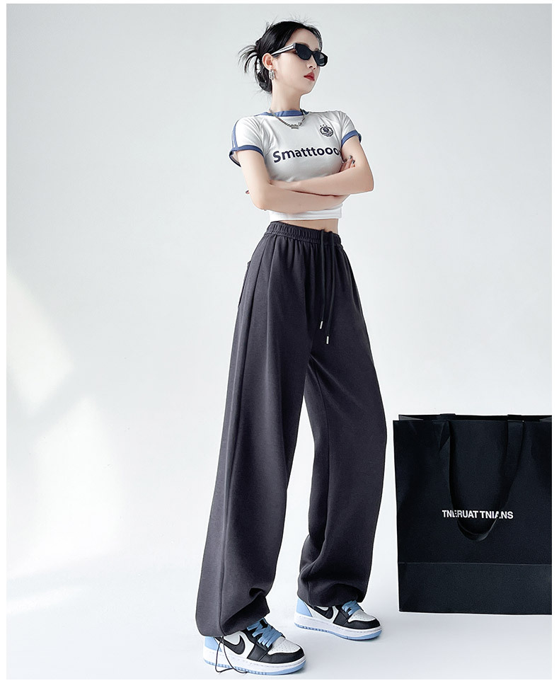 흰색 회색 캐시미어 방풍 바지 여성의 가을과 겨울 기모 두꺼운 북동쪽 코튼 팬츠 외부 착용 느슨한 따뜻한 와이드 레그 바지스토어 가기