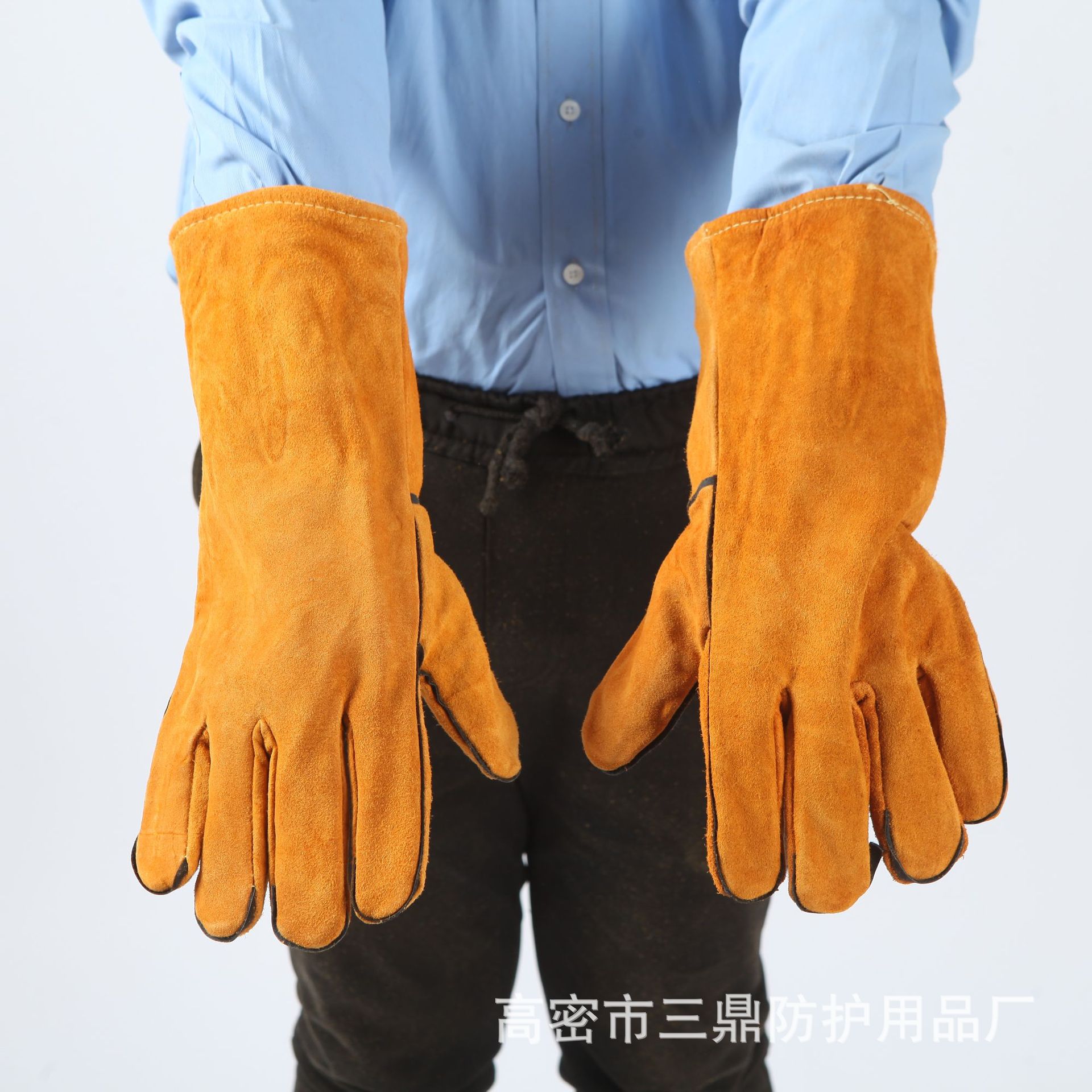 더블 레이어 벨벳 용접 가죽 장갑 아르곤 아크 용접 장갑 내화 와이어 부드러운 내마모성 단열 작업 장갑