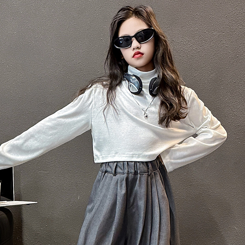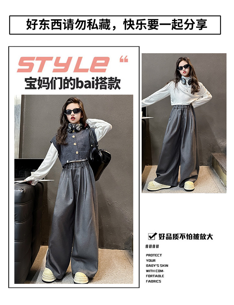 소녀의 봄과 가을 하이 엔드 세트 유행 서양식 빅 보이 한국 가을 조끼 베이스 셔츠 넓은 다리 바지 3 종 세트스토어 가기