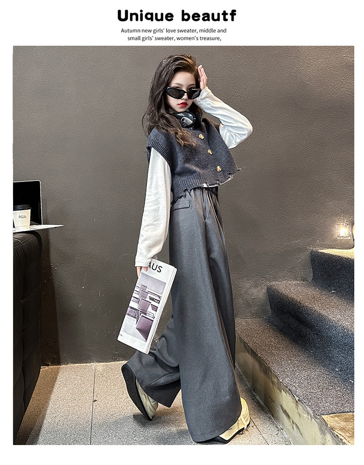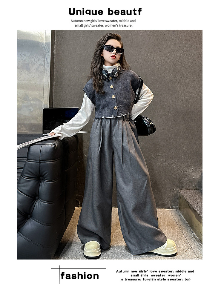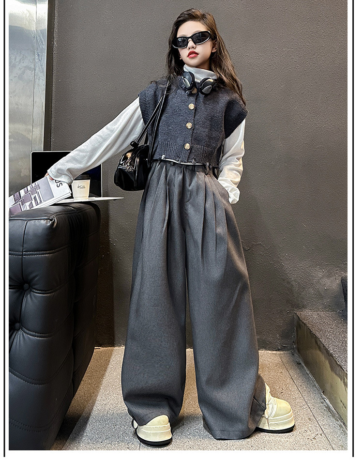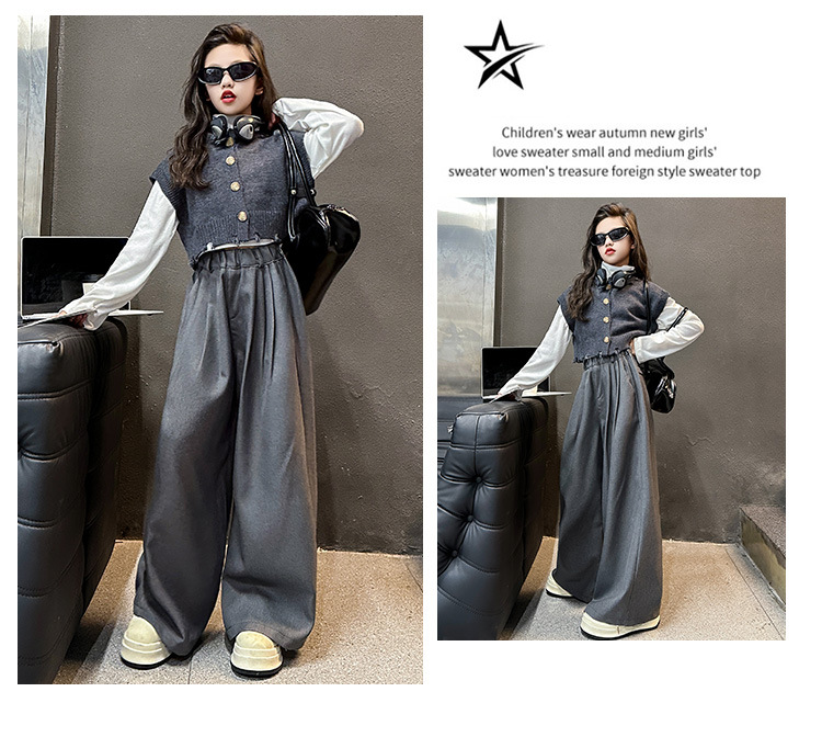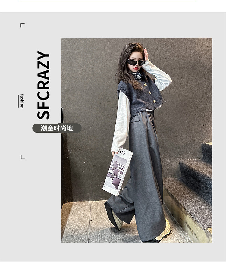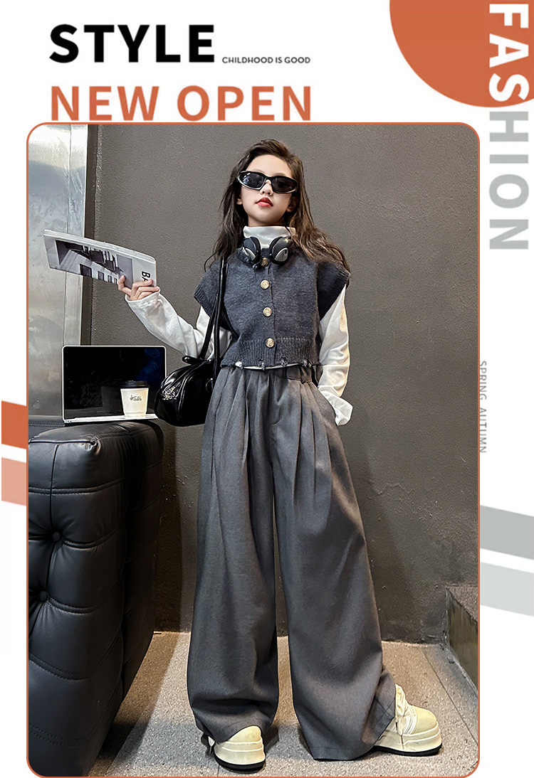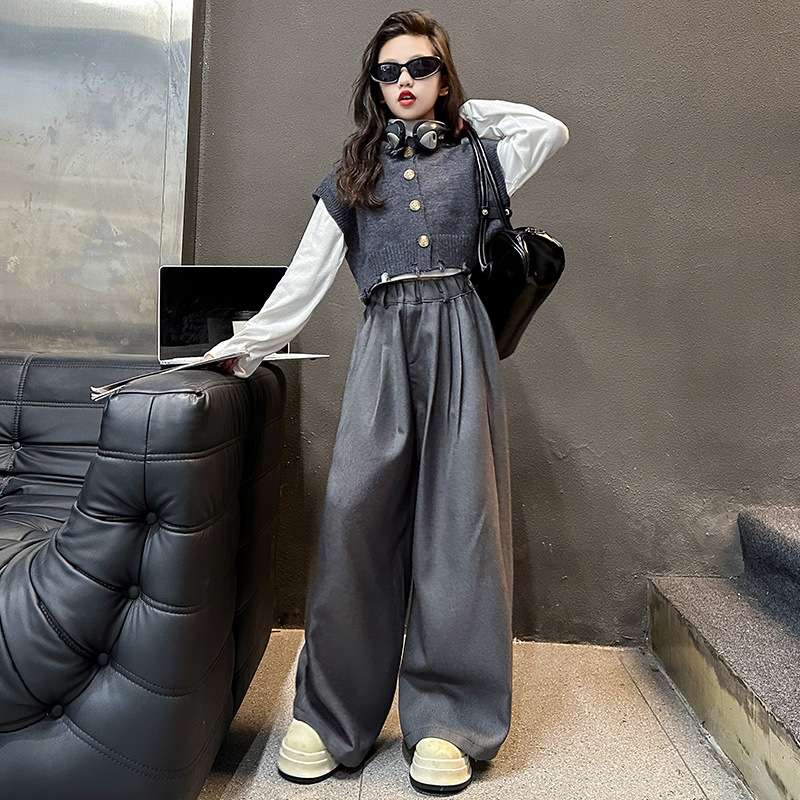 소녀의 봄과 가을 하이 엔드 세트 유행 서양식 빅 보이 한국 가을 조끼 베이스 셔츠 넓은 다리 바지 3 종 세트