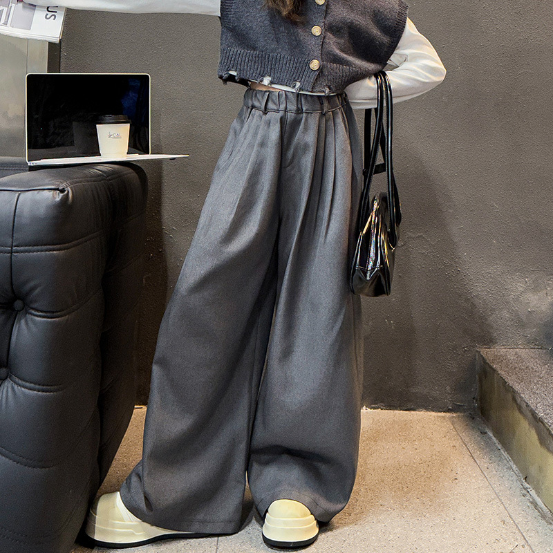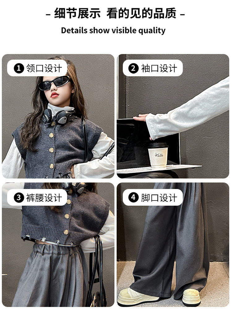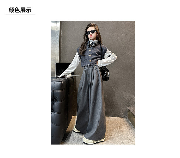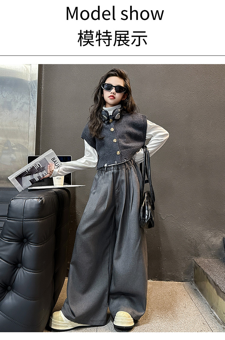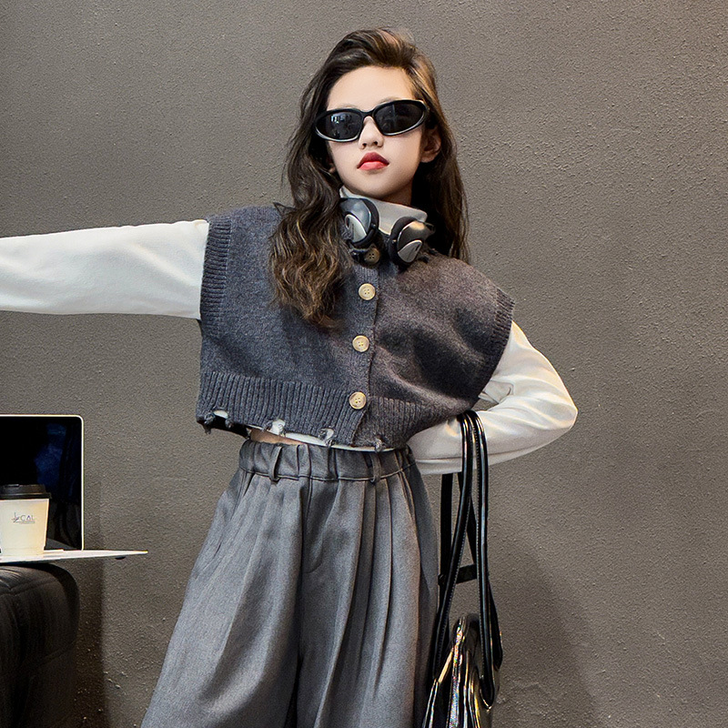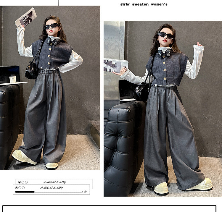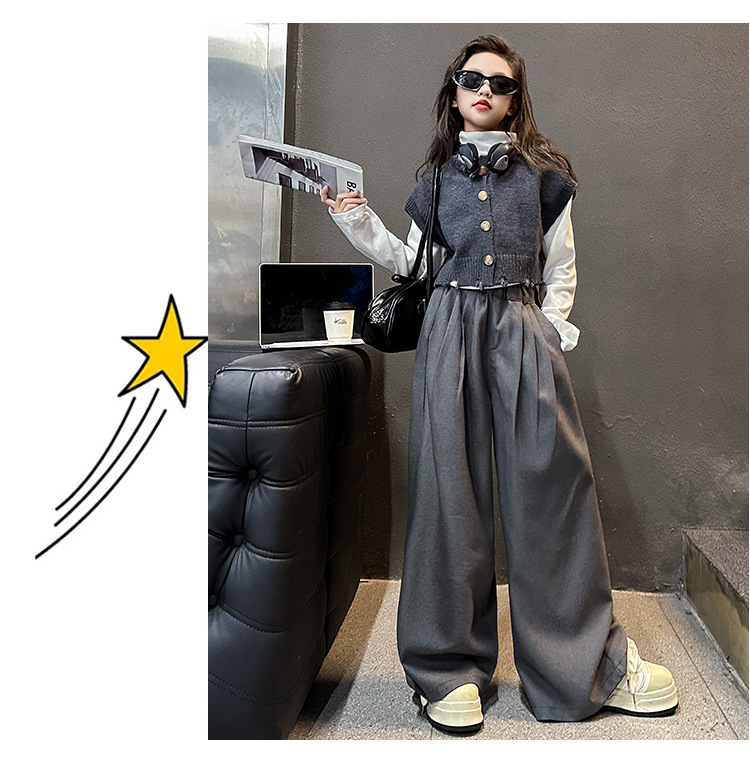 소녀의 봄과 가을 하이 엔드 세트 유행 서양식 빅 보이 한국 가을 조끼 베이스 셔츠 넓은 다리 바지 3 종 세트