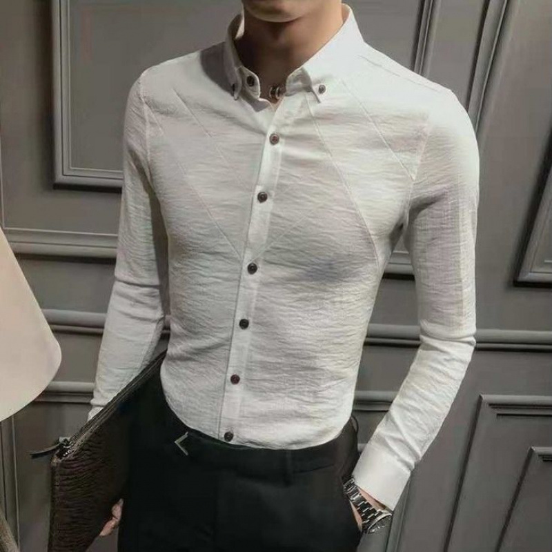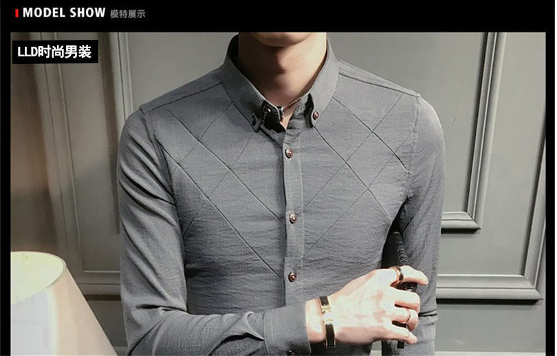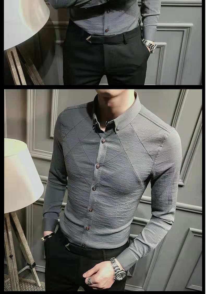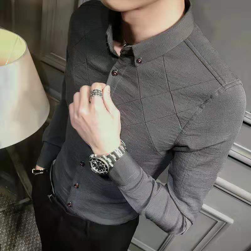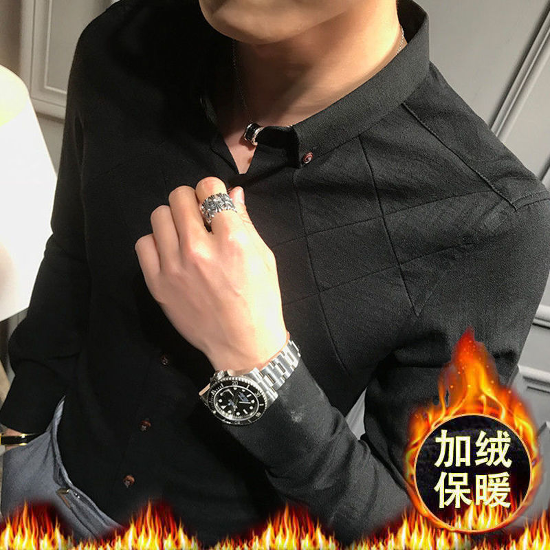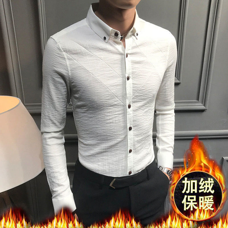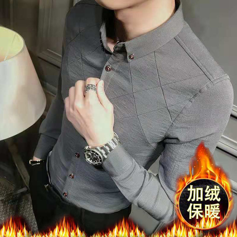나이를 줄이는 기모 슬림 핏 남성용 셔츠 라이트 럭셔리 슬림 핏 비 다림질 스트레치 캐주얼 긴팔 슬림 핏 남성용 하이 엔드 셔츠스토어 가기