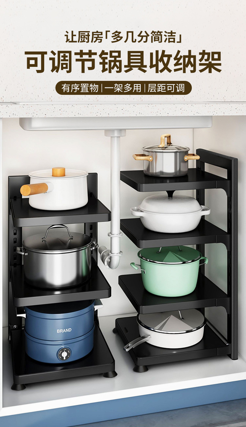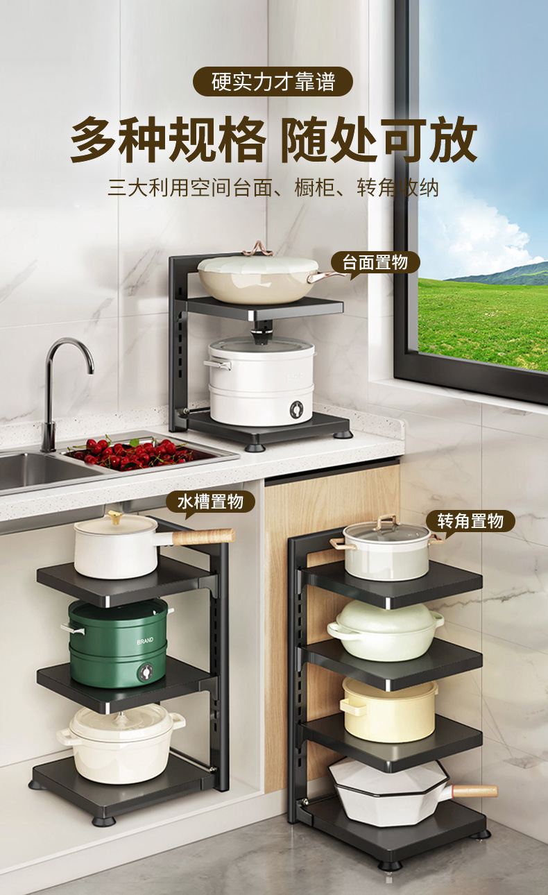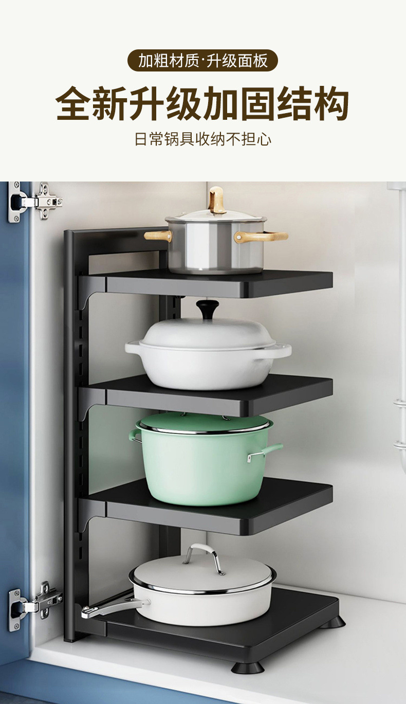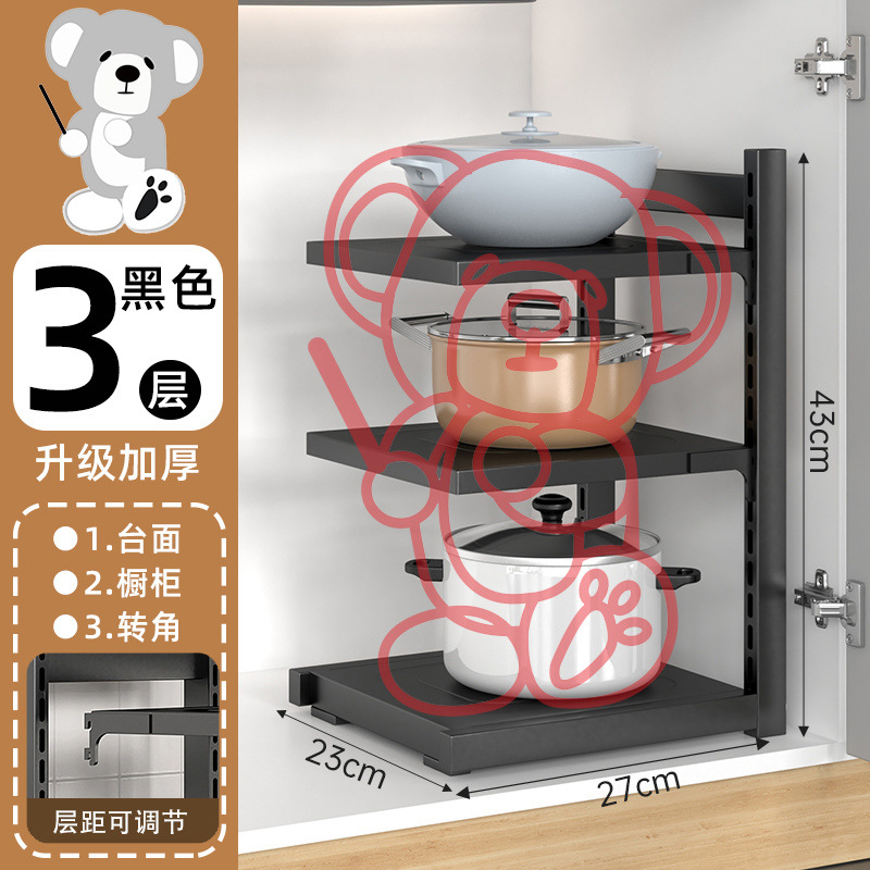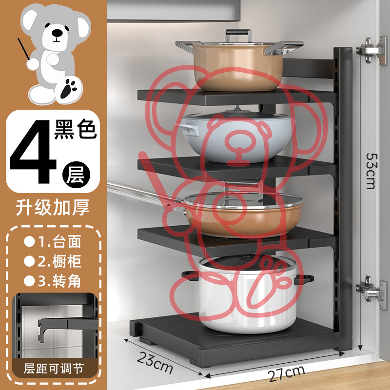 주방 보관 랙 가정용 다층 냄비 저장 랙 낮은 분지 캐비닛 계층화 된 냄비 랙 다층스토어 가기