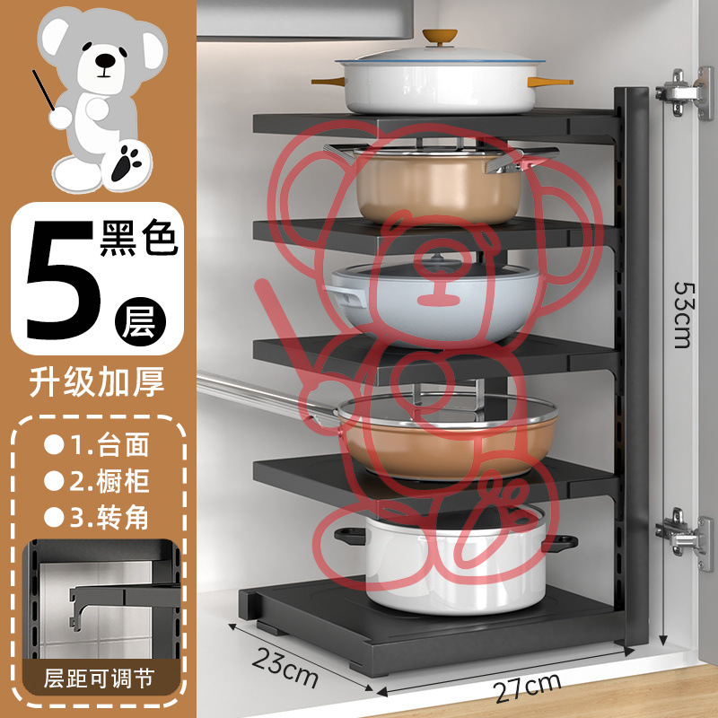 주방 보관 랙 가정용 다층 냄비 저장 랙 낮은 분지 캐비닛 계층화 된 냄비 랙 다층