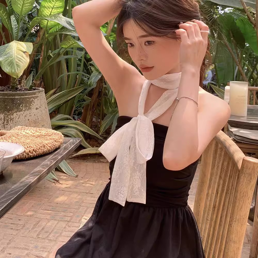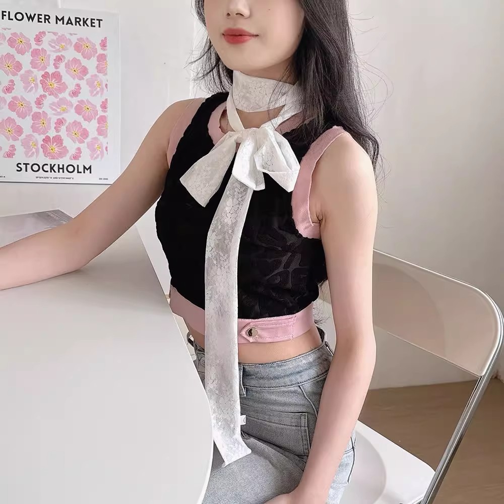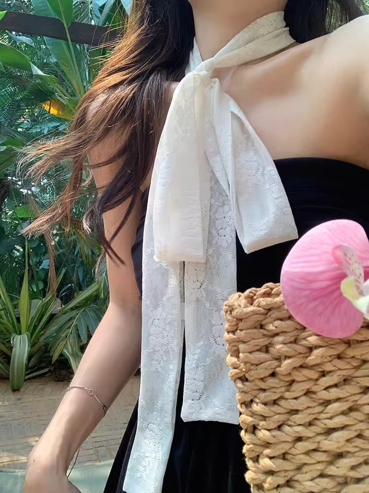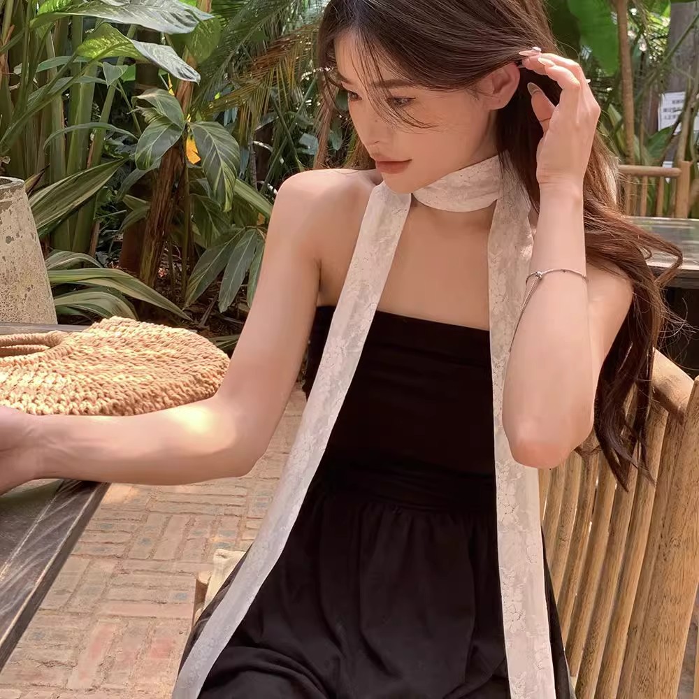 새로운 스카프 목 벨트 소녀 더블 탄성 레이스 슈퍼 긴 장식 스카프 다기능 스트랩 헤어 벨트 벨트