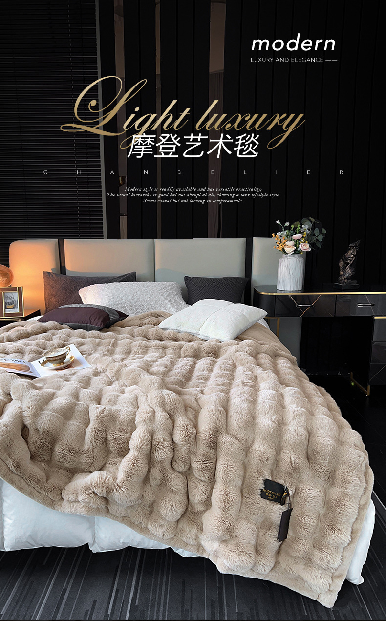 게으른 스타일 하이 엔드 가정용 담요 두꺼운 따뜻한 소파 커버 담요 가짜 토끼 모피 가을과 겨울 빛 럭셔리 라셀스토어 가기