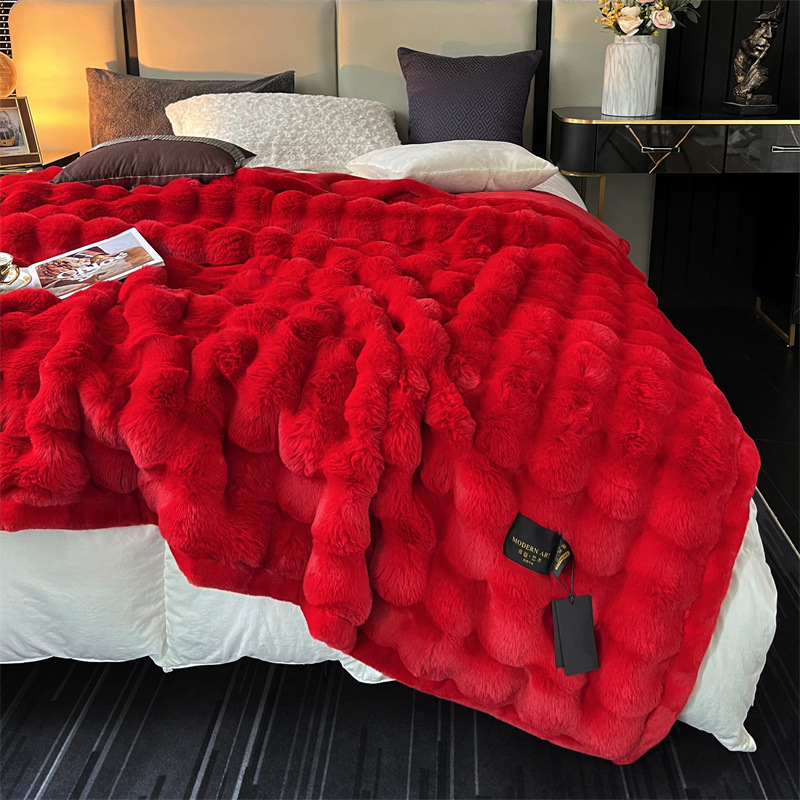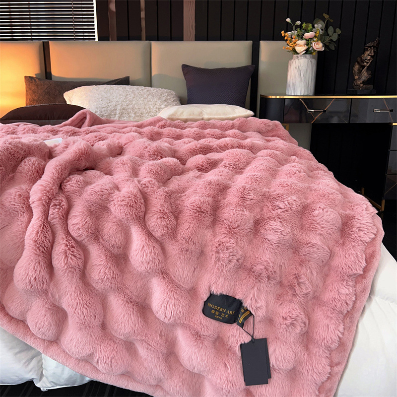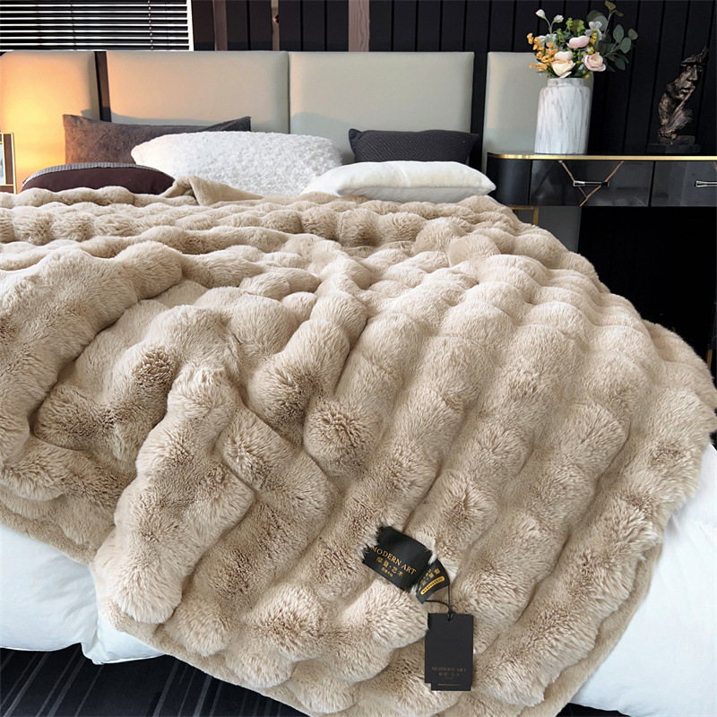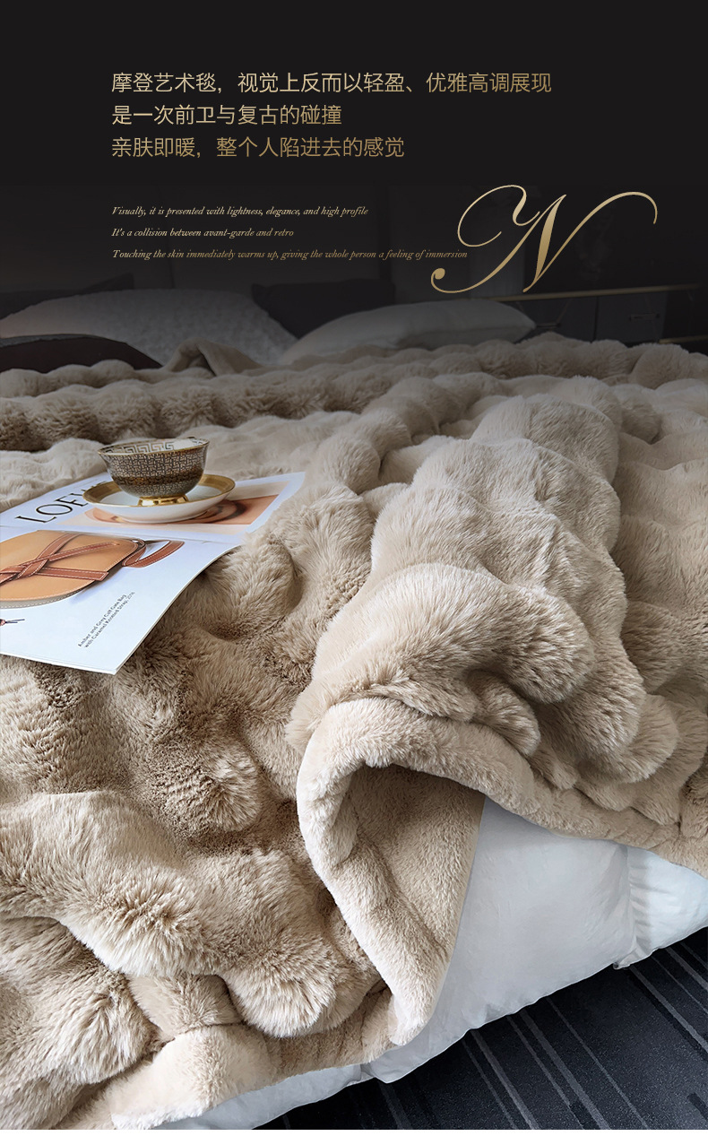 게으른 스타일 하이 엔드 가정용 담요 두꺼운 따뜻한 소파 커버 담요 가짜 토끼 모피 가을과 겨울 빛 럭셔리 라셀