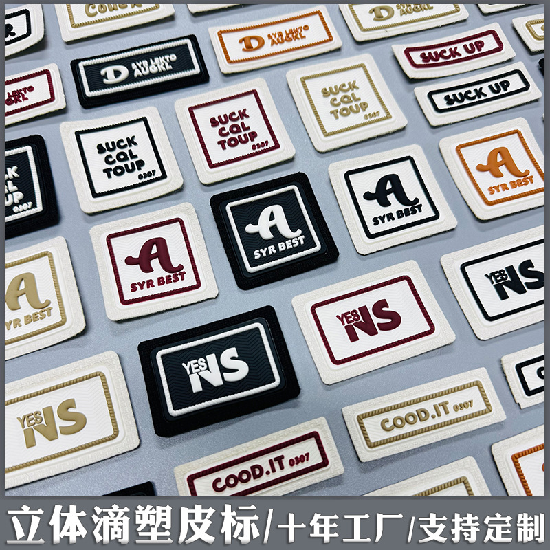 3 차원 로고 가죽 라벨 10 년 공장 3D 드롭 플라스틱 가죽 브랜드 의류 장식 표준 가방 고무 성형 가죽 스탬프
