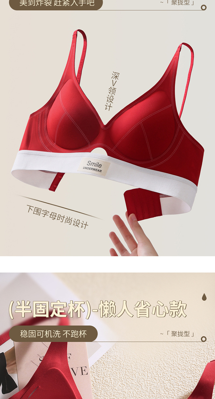 2024 새로운 레드 아름다운 백 클라우드 센스 작은 가슴 모임 추적없는 쇼 큰 가슴 없음 강철 링 더 가까운 Parammary 유럽과 미국 브래지어